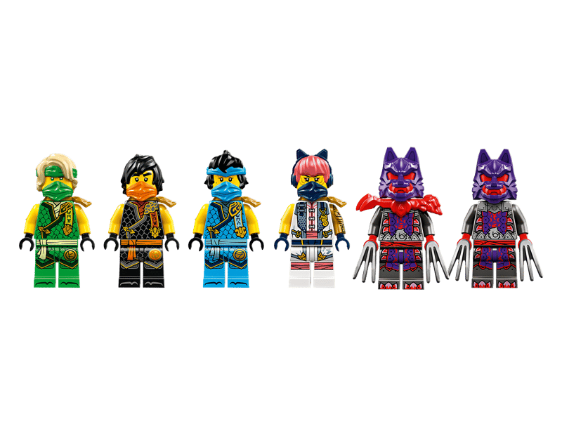 Zestaw z pojazdem obejmuje sześć minifigurek: Sorę, Lloyda, Nyę i Cole’a w specjalnych zbrojach turniejowych z katanami, a także ich wrogów: wojownika wilczej maski i generała wilczej maski.
