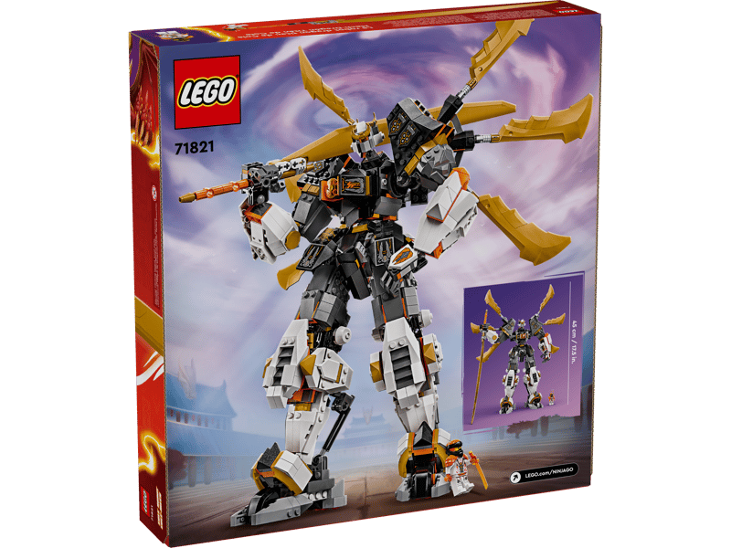 Dzięki zestawowi Tytanowy smok-mech Cole’a (71821) dzieci w wieku od 12 lat mogą odtwarzać sceny z drugiego sezonu serialu NINJAGO® Powstanie Smoków. To największy tytanowy mech NINJAGO, jaki kiedykolwiek się pojawił. Ma ruchome ręce, nogi, głowę,ciało i przeguby, które umożliwiają ustawianie go w bojowych pozach. Całość uzupełniają ruchome smocze skrzydła i wielki miecz.