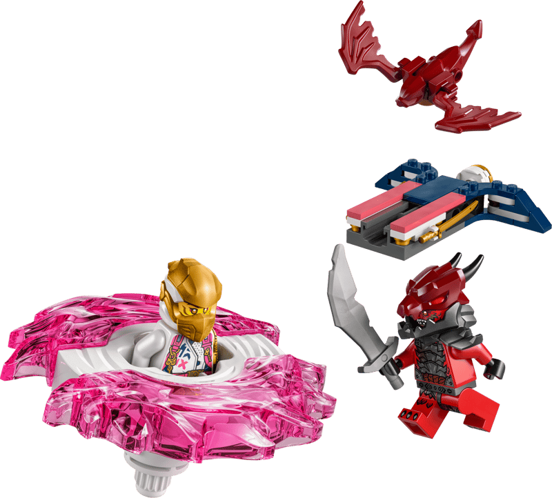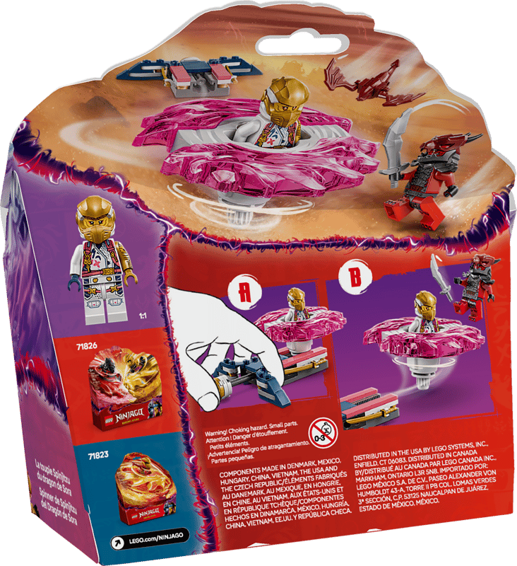 Mały zestaw LEGO zawiera dwie minifigurki: Sorę z mieczem w smoczym spinnerze Spinjitzu, złego dragońskiego wojownika z mieczem, a także model małego smoczego stwora. Dzieci mogą odgrywać role, organizując bitwy dobra ze złem z tymi popularnymi postaciami NINJAGO.