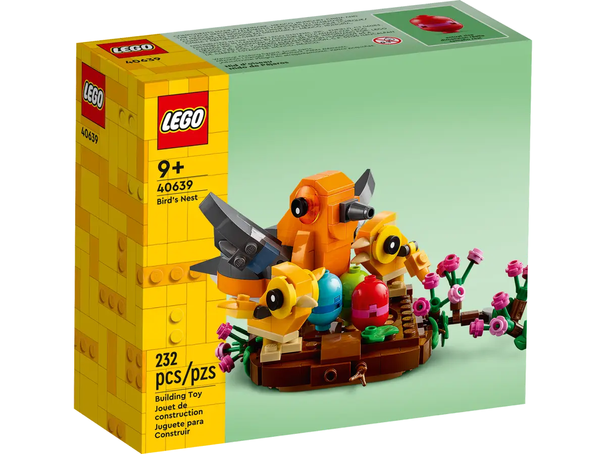 W sezonie wiosennym i wielkanocnym podaruj dziewięciolatkom i starszym dzieciom zestaw LEGO® Ptasie gniazdo (40639). Obejmuje on 232 elementy z gniazdem, kwitnącą gałązką oraz miejscem dla ptasiej mamy, dwóch piskląt i trzech pisanek. Ptaki i pisanki można wyjmować, a każdy z ptaszków ma ruchome skrzydła, dzięki czemu dzieci mogą bawić się modelem na różne sposoby. Mogą też zmieniać kompozycję kwiatów na gnieździe i gałązce, świętując wiosnę i Wielkanoc!