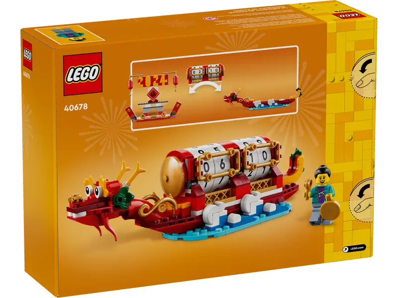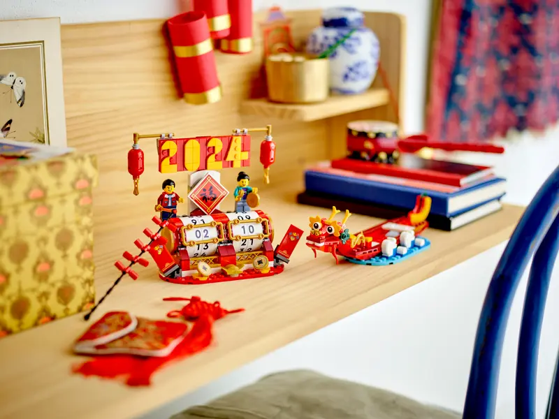 Świętowanie jest jeszcze fajniejsze dzięki kalendarzom LEGO®. Rozbudź kreatywność dzieci w wieku od 10 lat tym Kalendarzem festiwalowym LEGO® (40678), który umożliwia zbudowanie dwóch różnych modeli. Całość jest obrotowa, więc dzieci mogą wybrać, jaka data ma być widoczna. Model z okazji Nowego Roku Księżycowego zawiera dwie minifigurki i lampiony, natomiast model z okazji Święta Smoczych Łodzi obejmuje głowę i ogon pięknego smoka, a także elementy imitujące wodę. Ponadto w zestawie znajdują się fajerwerki, czerwone koperty i symbol szczęścia.