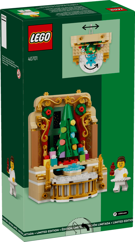 Zapoznaj dzieci z baletem „Dziadek do orzechów” Czajkowskiego dzięki zestawowi konstrukcyjnemu LEGO® Scena z baletnicą i dziadkiem do orzechów (40701). To kreatywny prezent dla chłopców i dziewczynek w wieku od dziewięciu lat. Młodzi budowniczy z zapałem odtworzą kultową historię z klocków LEGO, a następnie pobawią się obracającą się minifigurką baletnicy, która ma na sobie spódniczkę tutu i trzyma małą figurkę dziadka do orzechów. Inne detale obejmują okno z widokiem na nocne niebo i choinkę LEGO.