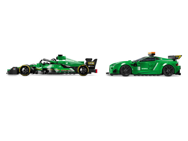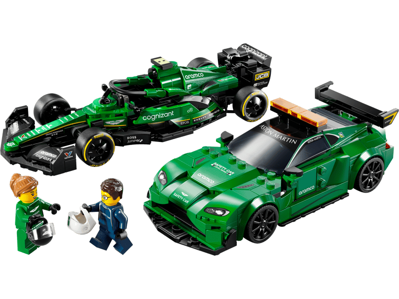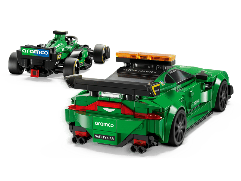 Samochód bezpieczeństwa Aston Martin zawiera wiele autentycznych detali nawiązujących do pierwowzoru, w tym zamontowany na dachu kogut, naklejkę z przyciskami włączania świateł w kokpicie i tylne światła, natomiast samochód wyścigowy AMR23 ma system Halo, tylne skrzydło i logotypy sponsorów. Do każdego modelu dołączona jest także minifigurka kierowcy, którą dzieci mogą umieścić za kierownicą i odgrywać wyścigi.