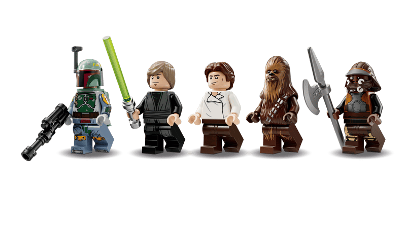 Ten kolekcjonerski zestaw konstrukcyjny to fajny prezent dla dzieci i wszystkich fanów klasycznej sagi Gwiezdnych Wojen™. Zawiera sześć minifigurek LEGO, w tym Luke’a Skywalkera, Hana Solo, Chewbaccę, Lando Calrissiana i Bobę Fetta, a także szczegółowe akcesoria. Dodatkowo w zestawie jest specjalna minifigurka Nien Nunba z okazji 25-lecia LEGO Star Wars.