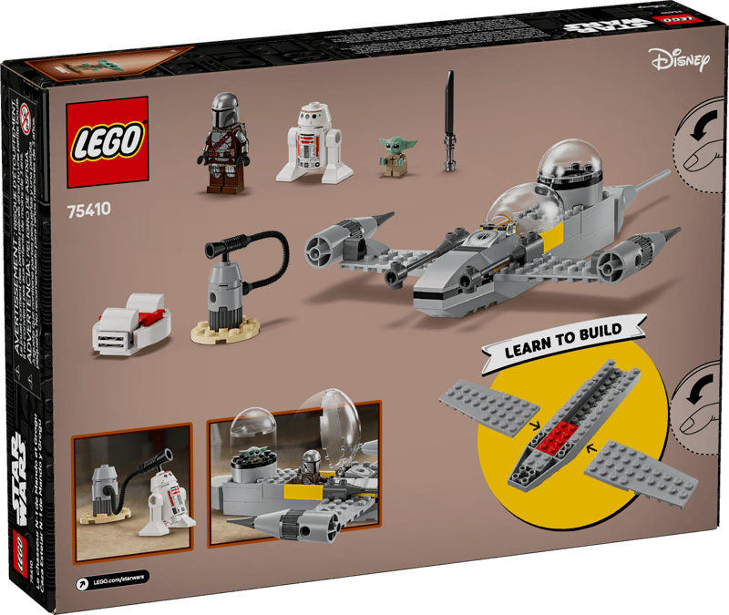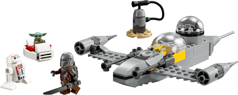 Ten zestaw z modelem myśliwca N-1 zawiera trzy postacie LEGO Star Wars: Mandalorianina z mrocznym mieczem i plecakiem odrzutowym, Grogu z lewitującym wózkiem i droida R5-D4. Umieść Mandalorianina w otwieranym kokpicie myśliwca N-1, a Grogu w części pasażerskiej z tyłu.