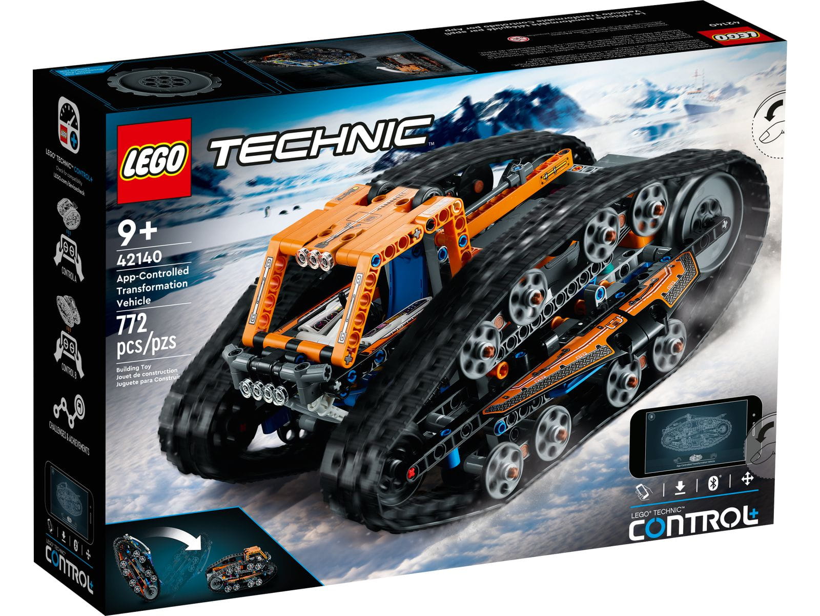 Dziewięciolatkom i starszym dzieciom spodoba się podwójna frajda z zestawem LEGO® Technic Zmiennokształtny pojazd sterowany przez aplikację (42140). To pierwszy taki zestaw LEGO Technic — gdy zabawka uderzy w ścianę, przewraca się na drugą stronę i zamienia w drugi pojazd. Nie masz w pobliżu ściany? Nie szkodzi! Model można po prostu obrócić. Z jednej strony jest aerodynamiczny samochód wyścigowy, a z drugiej pojazd badawczy — oba na gąsienicach. Zawieszenie, kokpit i gąsienice z obu stron orazskrzynia furgonetki badawczej zapewniają mnóstwo atrakcji.