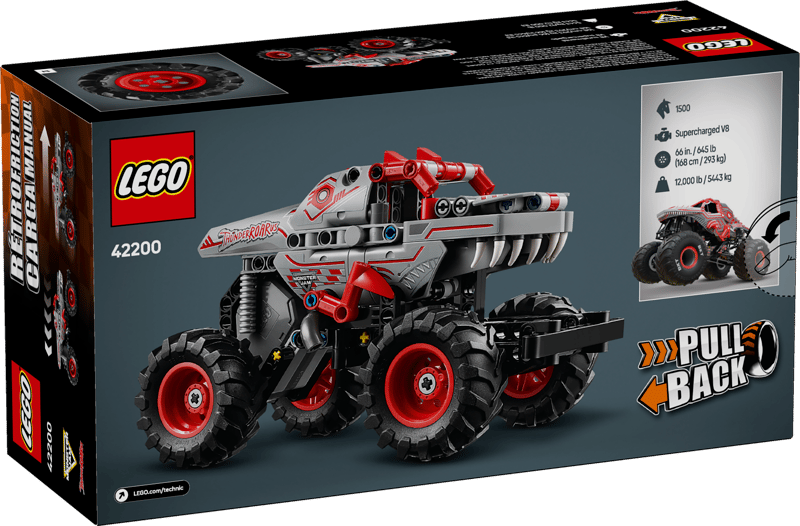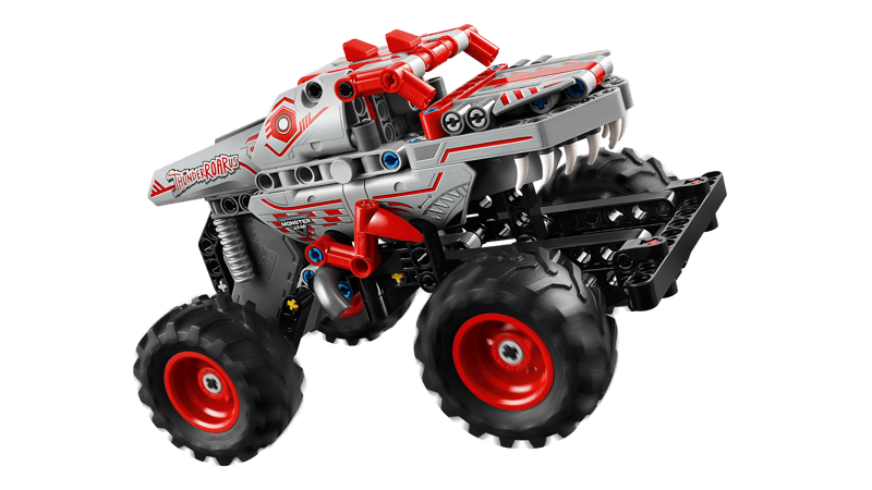 Oto samochód z napędem typu pull-back, który zachwyci wszystkich fanów Monster Jam™ w wieku od siedmiu lat. Zestaw LEGO® Technic Monster Jam™ ThunderROARus™ z napędem typu pull-back (42200) ma napęd pull-back, dzięki któremu dzieci mogą rozpędzić pojazd i odtworzyć emocjonujące sztuczki niczym ich ulubieni kierowcy monster trucków.