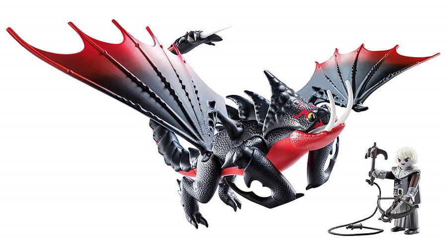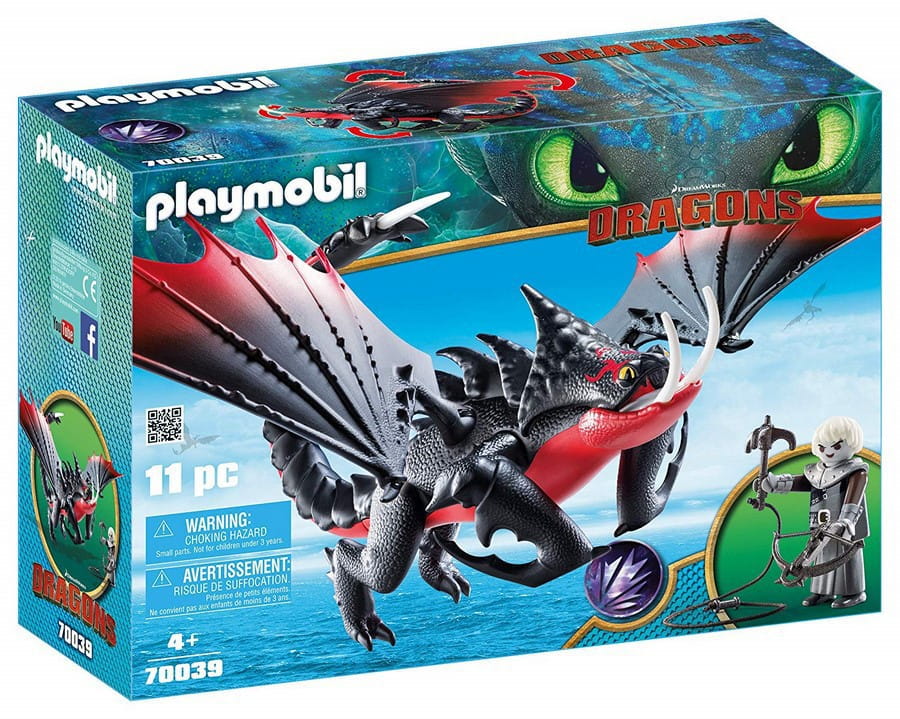 Odtwórz swoje ulubione sceny z filmu lub stwórz własne! Zestaw zawiera figurkę Grimmel'a, który może siedzieć, stać, ruszać rękami oraz obracać głową. A także figurkę smoka - Śmierciozaur, łuk i inne akcesoria tematyczne. Dzieci mogą bawić się tym zestawem samodzielnie lub łączyć z innymi zestawami Playmobil, co daje możliwość tworzenia nowych wątków podczas zabawy.