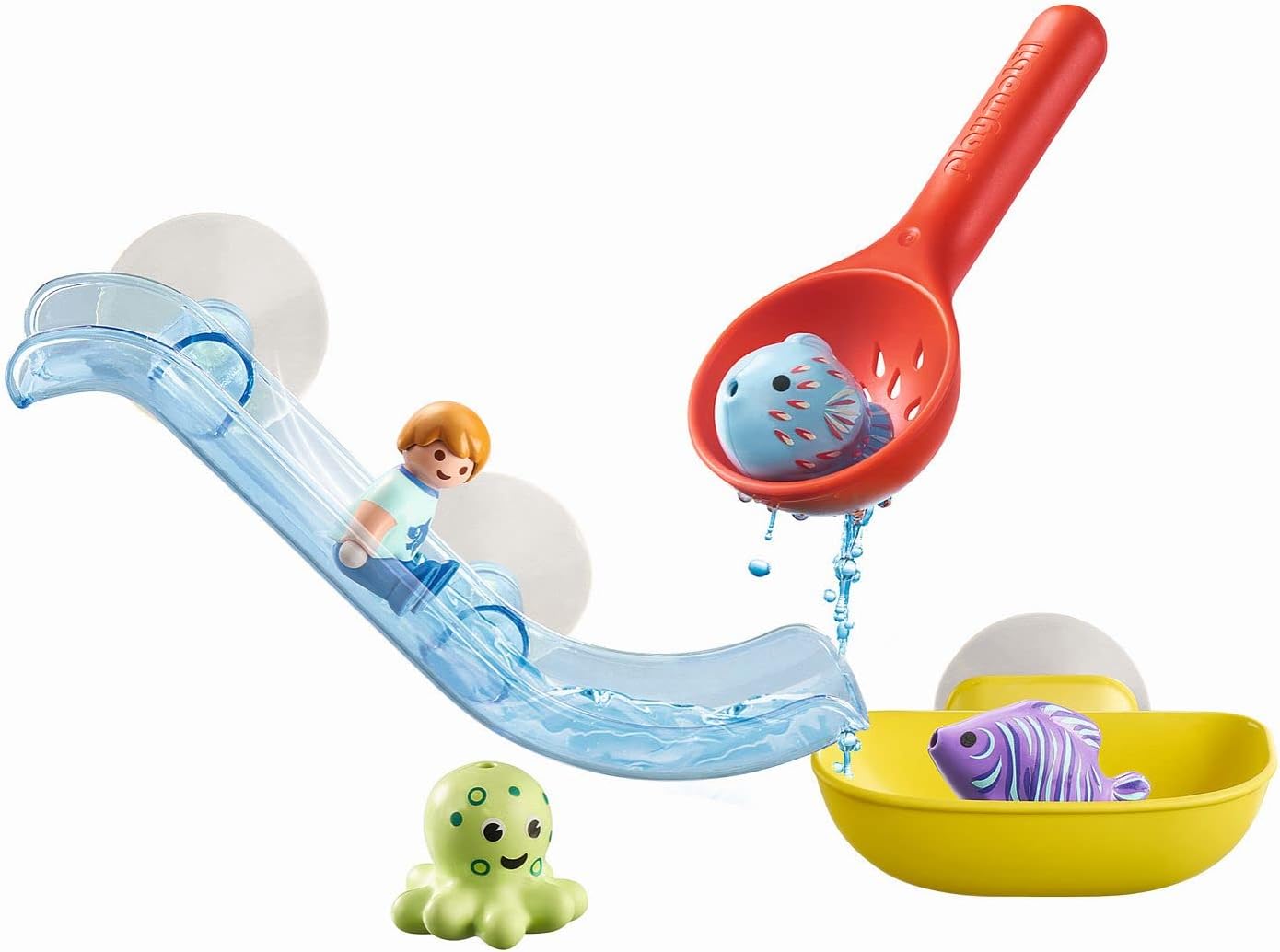 Pluskanie się PLAYMOBIL od 1,5 roku: kolorowa zabawka wodna PLAYMOBIL 1.2.3 dla dzieci do odkrywania podstawowych funkcji z pierwszymi wyzwaniami Zabawa w wannie z pływającymi zwierzętami, podbierakiem, figurką dla dzieci 1.2.3 oraz zjeżdżalnią i tacką z przyssawką do wanny i wielu innych.