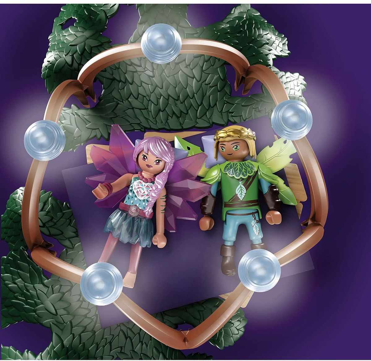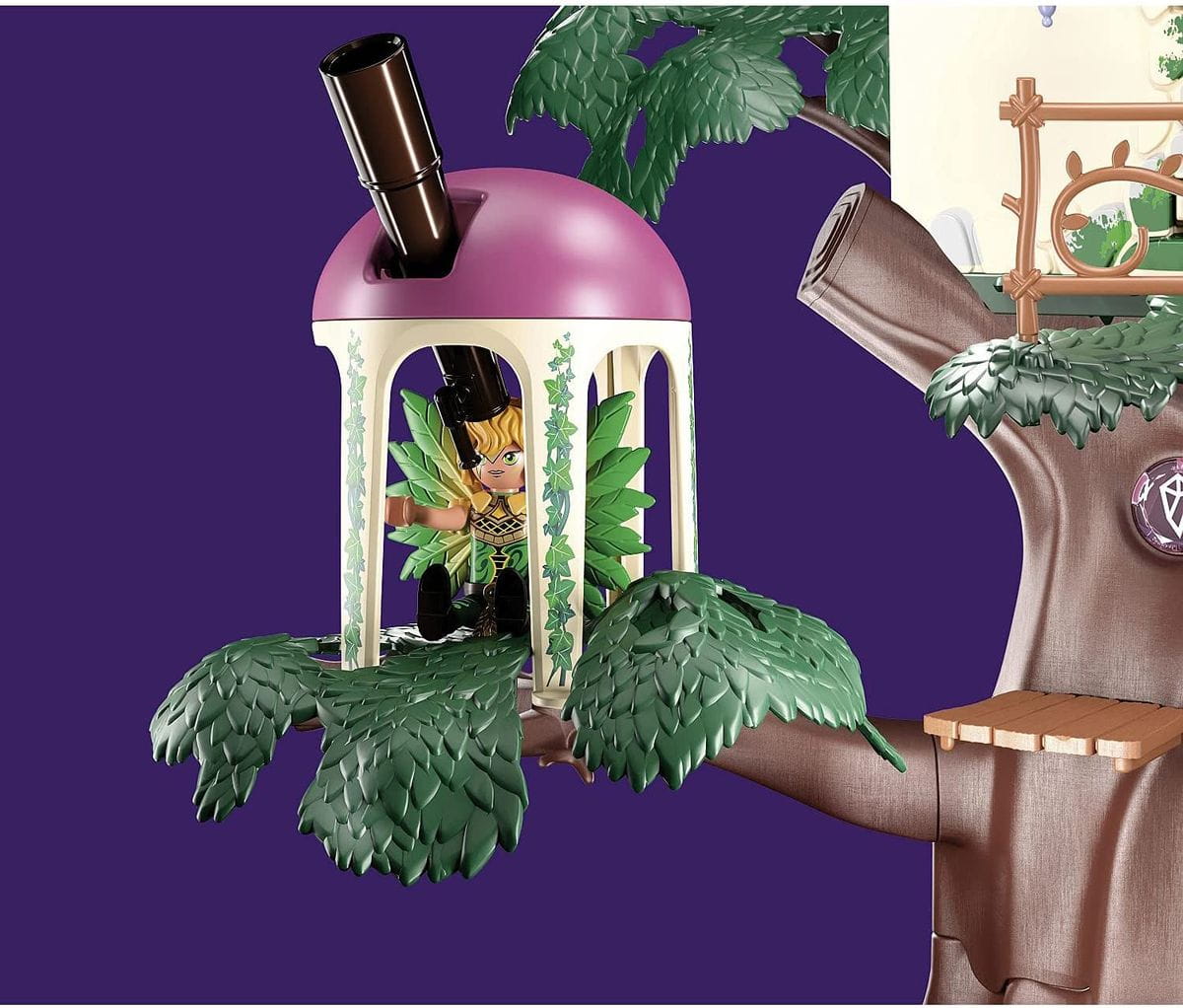 Na najwyższej wieży znajduje się projektor, który wyświetla magiczne niebo pełne gwiazd na suficie dziecięcego pokoju, podczas gdy lampiony zawieszone na drzewie świecą w ciemności. Zestaw można połączyć z zestawem Playmobil 70804 Domek kropelka (sprzedawany oddzielnie).