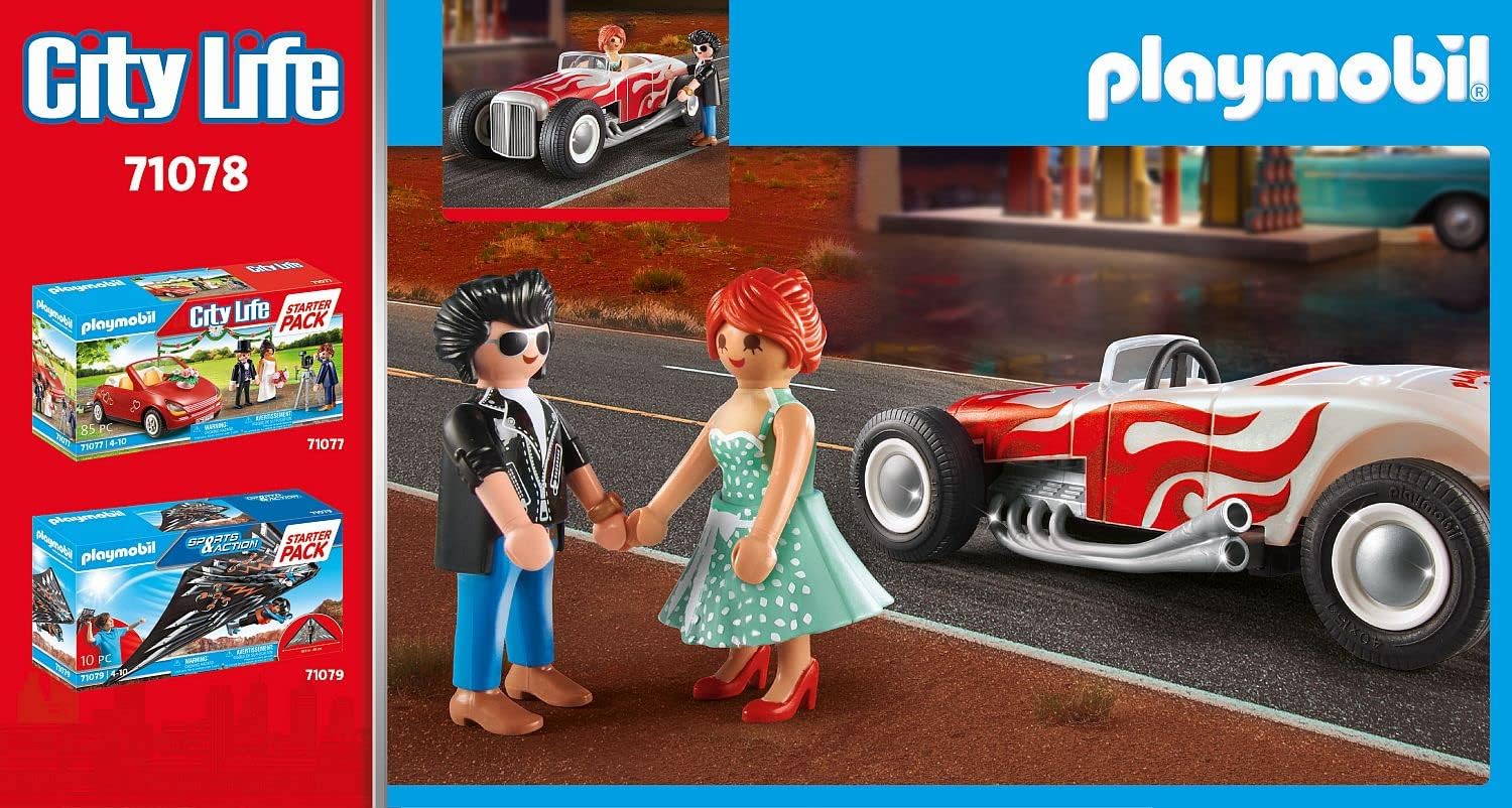 Szybki samochód wyścigowy PLAYMOBIL – zapewnia miejsce dla dorosłej figury, figura kobiety ze zdejmowaną, dwuczęściową spódnicą i zdejmowaną nakładką na włosy i wiele innych.