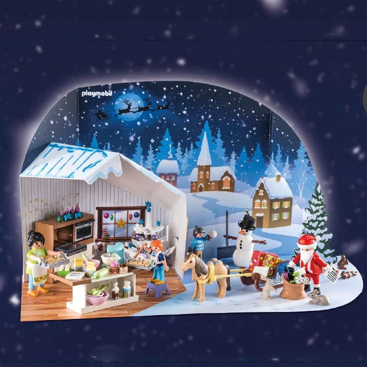 Zakres dostawy: 1 x PLAYMOBIL Christmas kalendarz adwentowy: 92-częściowy kalendarz adwentowy z instrukcją: 1 kuchnia, 1 sanie, 1 bałwan, 4 figurki, 1 diorama z kartonu, 84 akcesoria, materiał: papier, tworzywo sztuczne, możliwość indywidualnego ustawienia, waga: 232 g