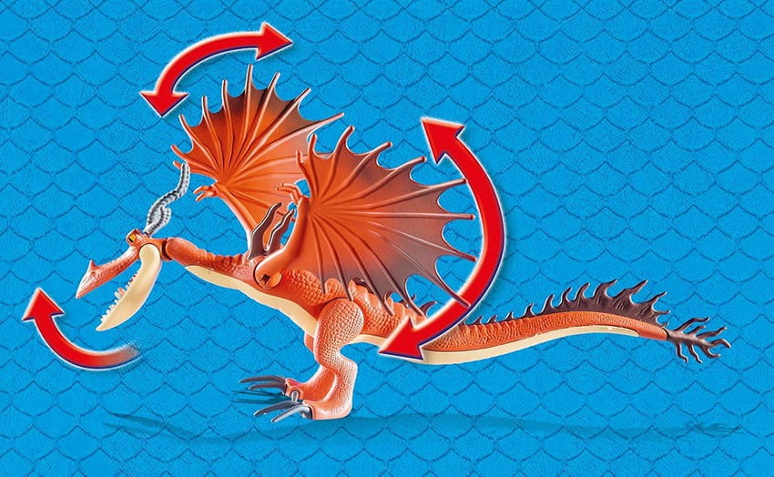 Zestaw z serii Dragons Sączysmark i Hokokieł to wspaniały zestaw, który rozkręci zabawę. Smok posiada zdejmowane siodło, w zestawie działająca balista (strzela) i inne akcesoria. Zawarta w zestawie owca pasuje do zestawu 9461 Pyskacz i Gbur z katapultą do owiec (zestaw 9461 sprzedawany osobno).