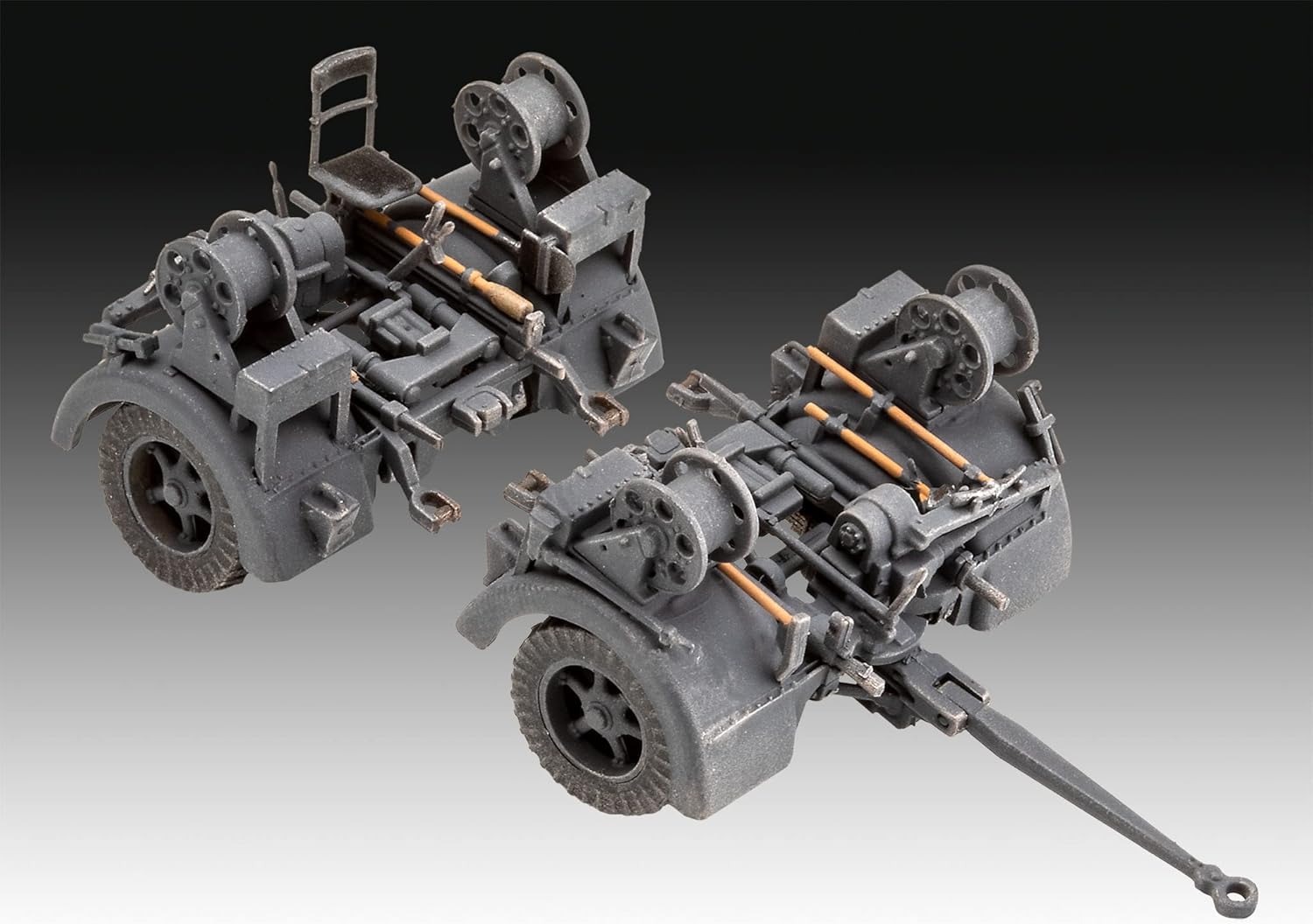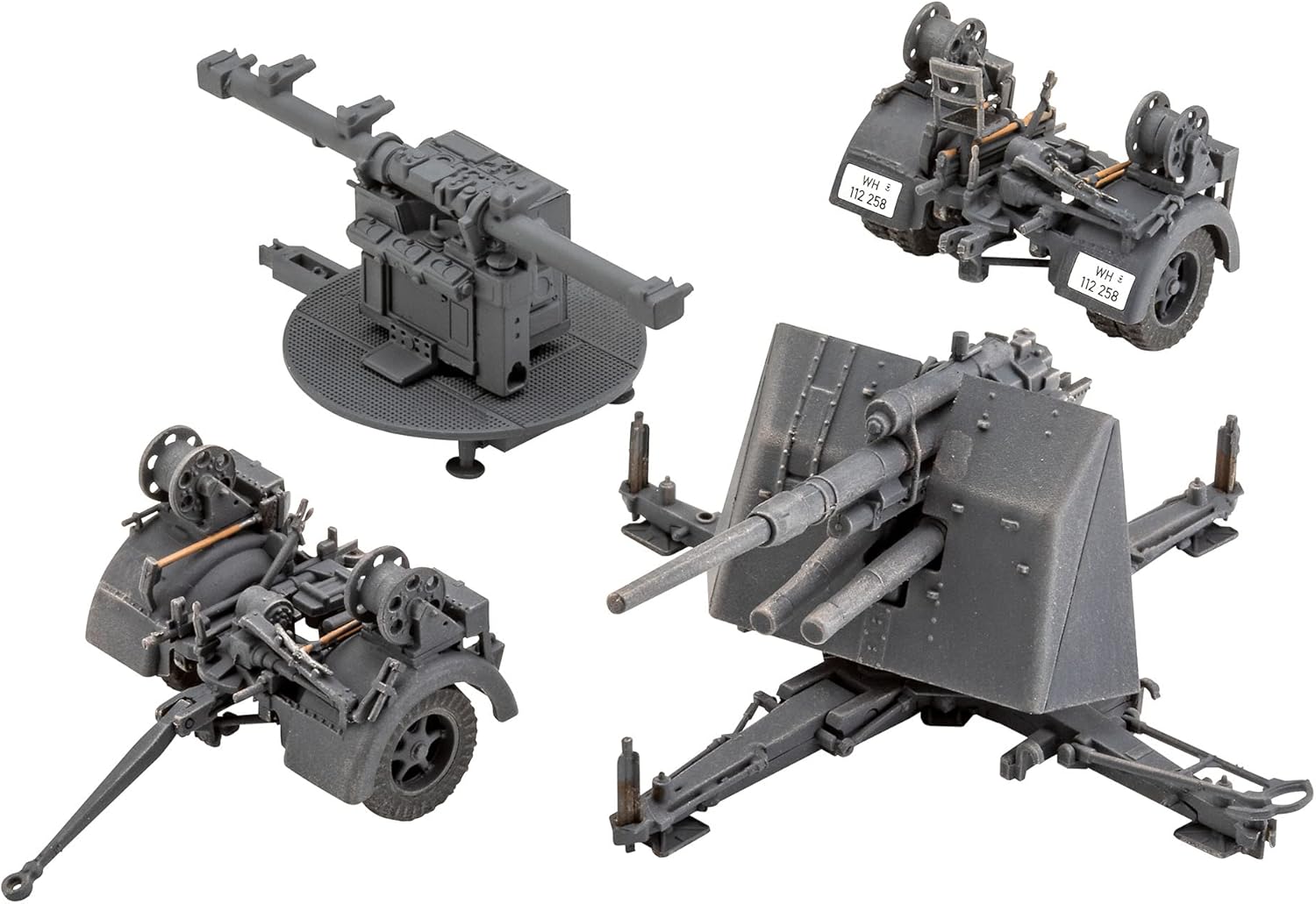 Model zestawu legendarnego 8,8 cm Flak z Sd.Anh.202. Był niezwykle skuteczny nie tylko przeciwko sojuszniczym formacjom bombowców, ale także w zwalczaniu celów naziemnych. – Opcjonalnie do zabudowy w pozycji przeciwpożarowej lub transportowej – Zawiera jednostkę dowodzenia 40. Autentyczne odwzorowanie następujących wersji: – 15. Dywizja Pancerna, Deutsches Africa Korps, Tripolis/Libyen, 1941 – Heeres-Flak-Artillerie-Abteilung 277, 11. Dywizja Pancerna “Gespensterdivision”, Rosja 1941.