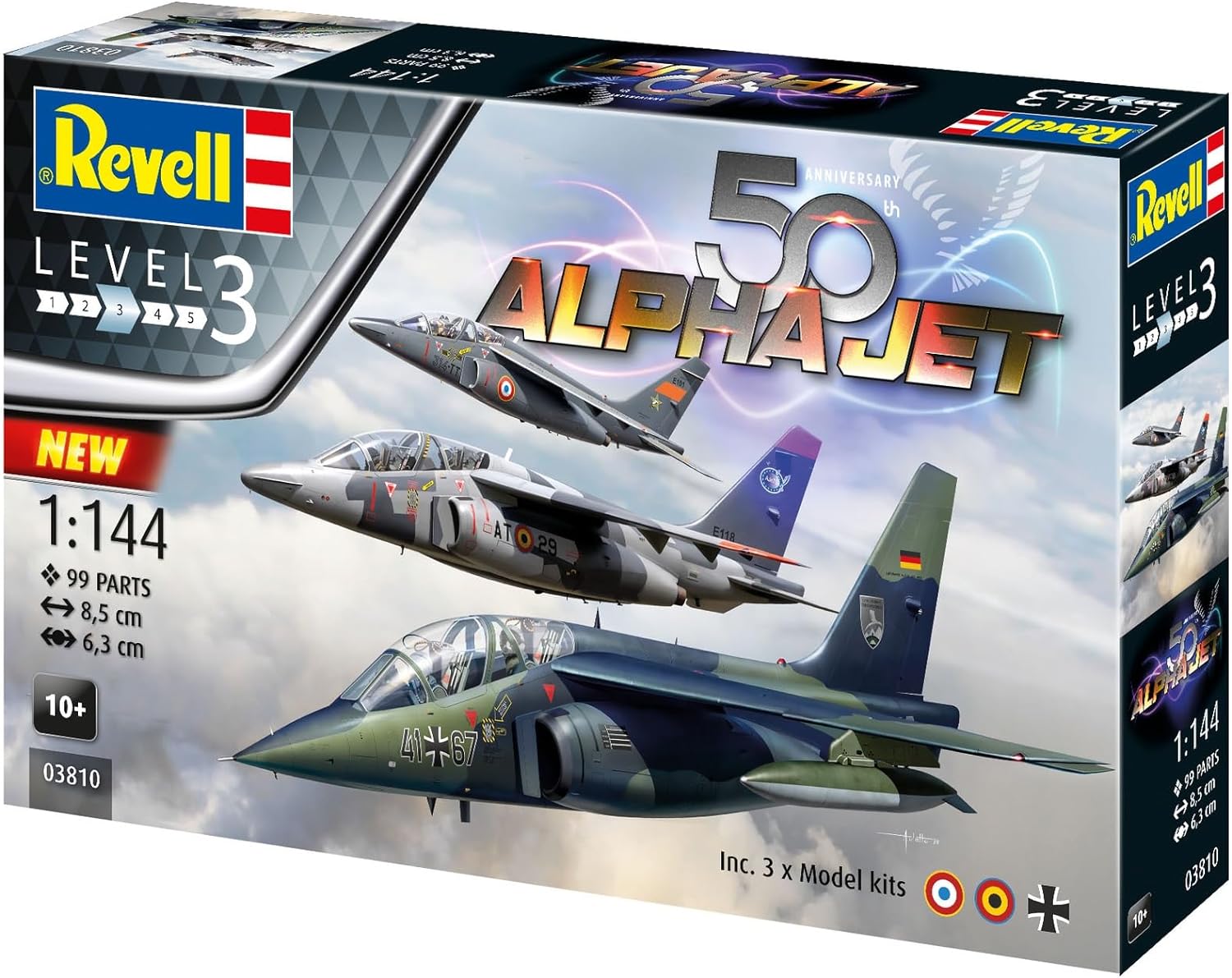 Zestaw upominkowy z okazji 50. rocznicy samolotu szkolno-treningowego Alpha Jet zawiera trzy modele w skali 1:144. Zestaw składa się ze 126 części. Alpha Jet to zwinny i bardzo zwrotny samolot poddźwiękowy, używany zarówno jako samolot treningowy, jak i w roli myśliwca-bombowca. Zestaw upominkowy zawiera wszystko, co potrzebne do łatwego montażu.