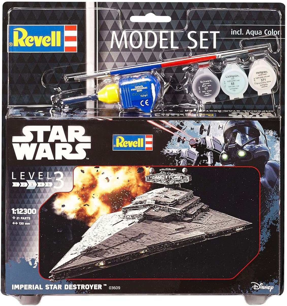 Imperium używa gigantycznych gwiezdnych niszczycieli w kształcie klina jako dużych statków transportowych do bitew kosmicznych. – Drobno grawerowana powierzchnia – Replika mostka dowodzenia – Repliki silnika – Stojak ekspozycyjny. Oprócz farb w podstawowych kolorach, w zestawie znajdują się również kleje i pędzle.