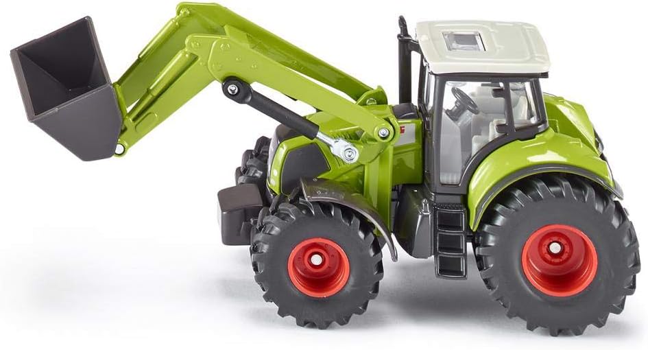 Ciągnik marki Claas z przednią ładowarką. Model metalowy z elementami plastikowymi. Bardzo starannie wykonany z dbałością o wszelkie szczegóły.