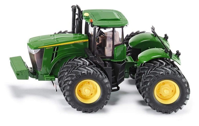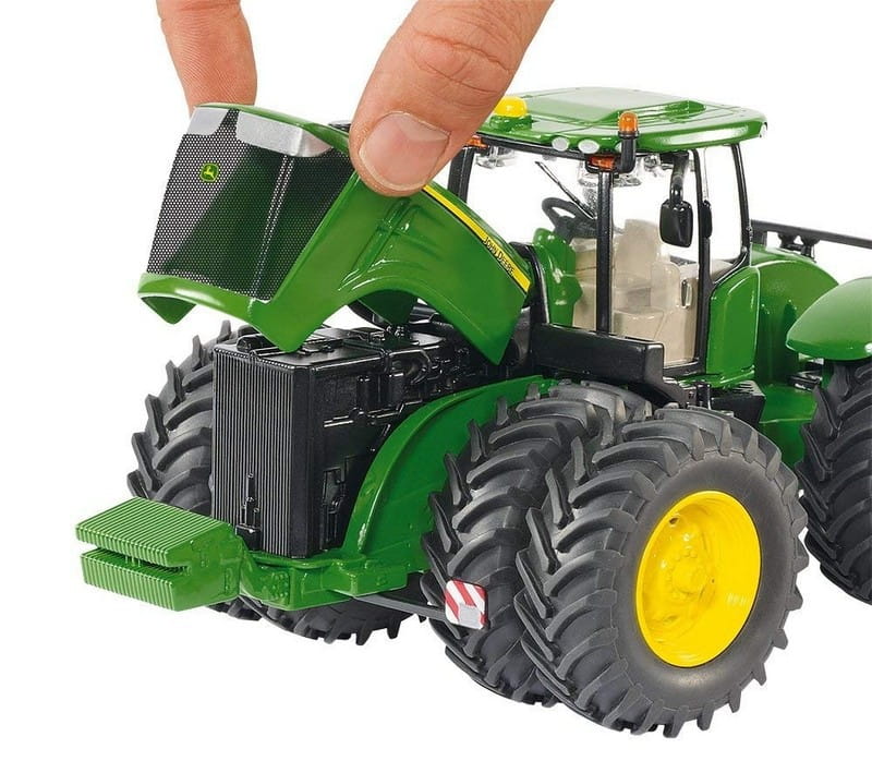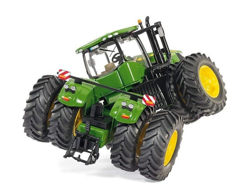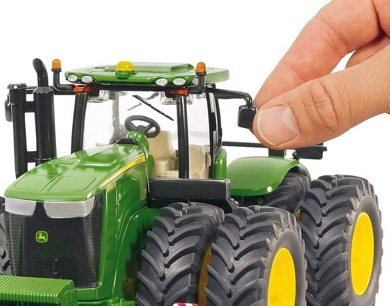 Modele z serii 9000 są najlepszymi ciągnikami firmy John Deere. Model posiada uniwersalny system oświetlenia na dachu kabiny oraz składane lusterka. Mocne bliźniacze koła z oryginalnych opon terenowych. Model bardzo starannie wykonany z dbałością o wszelkie szczegóły.