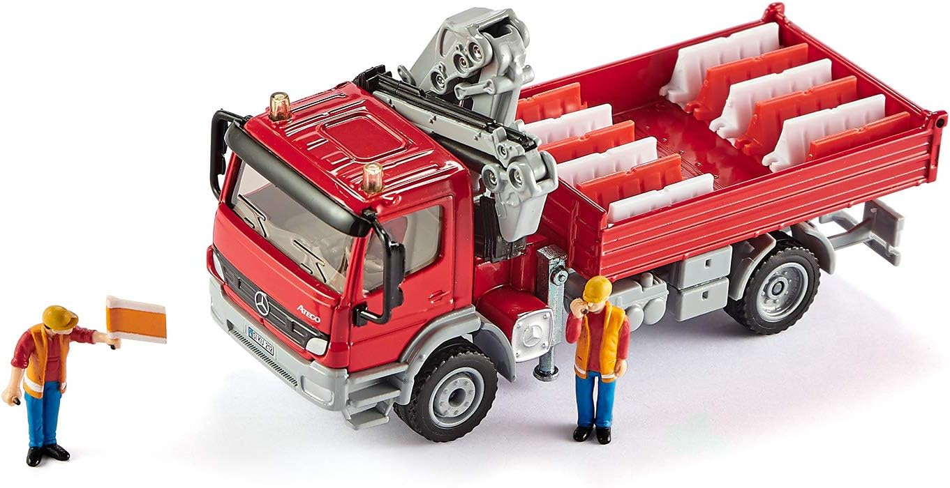 Model Mercedesa Atego z dźwigiem obrotowym wykonany z metalowych i plastikowych elementów w skali 1:50 z zachowaniem szczegółów maszyny rzeczywistej. Wyposażony w ruchomy, obrotowy dźwig i ruchomą wywrotkę ze stabilizatorem. Dzięki stabilnej konstrukcji i gumowym kołom model swobodnie porusza się po różnych powierzchniach.
