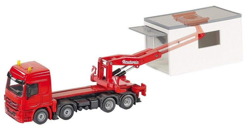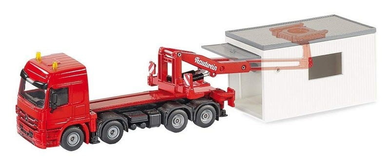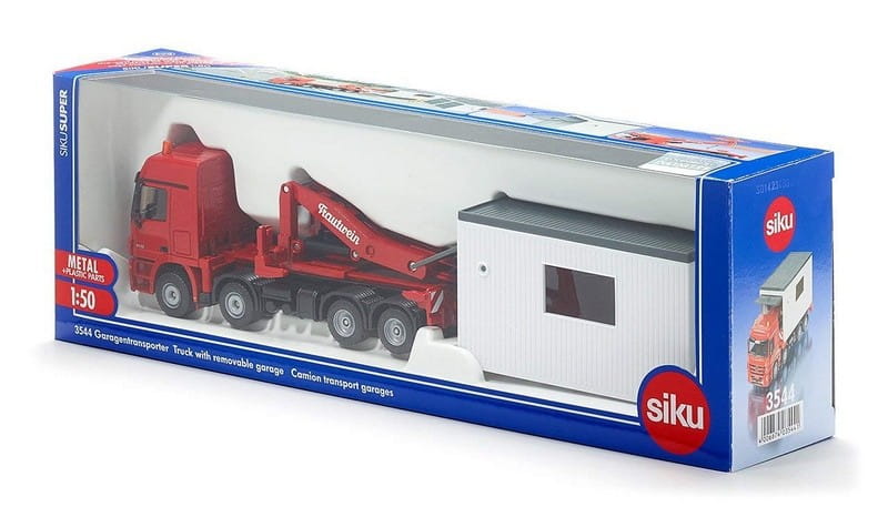 Czteroosiowa ciężarówka do przewozu garaży. Model odzwierciedla wygląd rzeczywisty z wysokim zachowaniem szczegółów. Doskonały jako zabawka i element ciekawej kolekcji. Skala 1:50