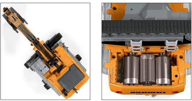 Koparka jest zdalnie sterowana. Dzięki stacji dowodzenia operator koparki ma wszystkie funkcje pod kontrolą. Nowe elementy sterownicze na dżojstiku wiernie oddają rzeczywiste ruchy koparki. Dzięki nowemu sterowaniu bez problemu możliwe jest wykonywanie precyzyjnych poleceń związanych z kopaniem, umacnianiem, rozdzielaniem, a także ich anulowanie. Dla bezpieczeństwa przy użytkowaniu tego modelu oraz w celu uniknięcia uszkodzeń, sześć skrzyni biegów zostało wyposażonych w odpowiednie sprzęgła. Ten wspaniały pod względem wizualnym i technicznym model dopełniony jest przez oświetlenie na bazie żarówek LED.