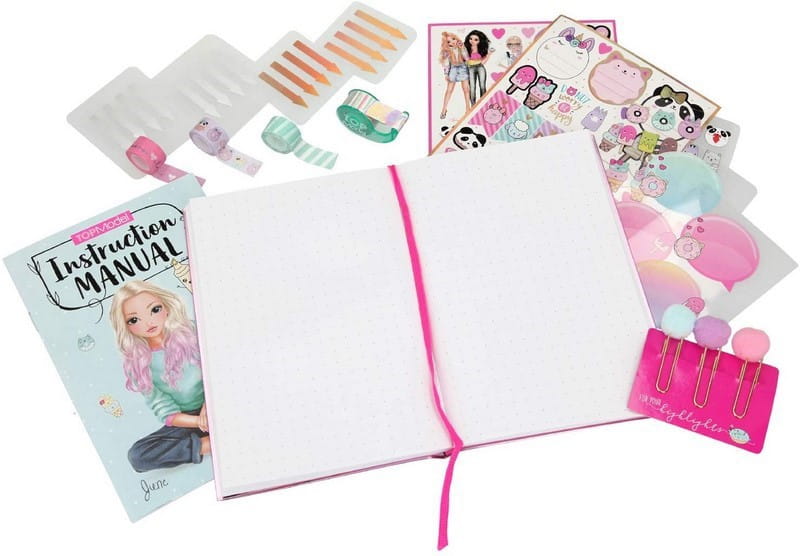 • Akcesoria: 3 taśmy dekoracyjne, 1 dyspenser, 3 duże spinacze biurowe z uroczymi pomponami i wieloma naklejkami.