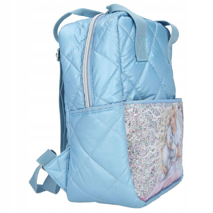 Z tą piękną torbą TOPModel jesteś całkowicie gotowa na zimę! Torba ma piękny zimowy motyw z wizerunkiem prawdziwej lodowej księżniczki z jej niedźwiedziem polarnym. Tkanina wygląda trochę jak tkanina zimowego płaszcza z pięknie wyszytym wzorem w romby i delikatnym niebieskim kolorem. Torba posiada pojemny schowek oraz przednią kieszeń. Dzięki regulowanym paskom torba jest zawsze wygodna, a dodatkowo posiada dodatkowy uchwyt do noszenia w ręku. Z tą torbą zawsze możesz być dobrze przygotowany w drodze!