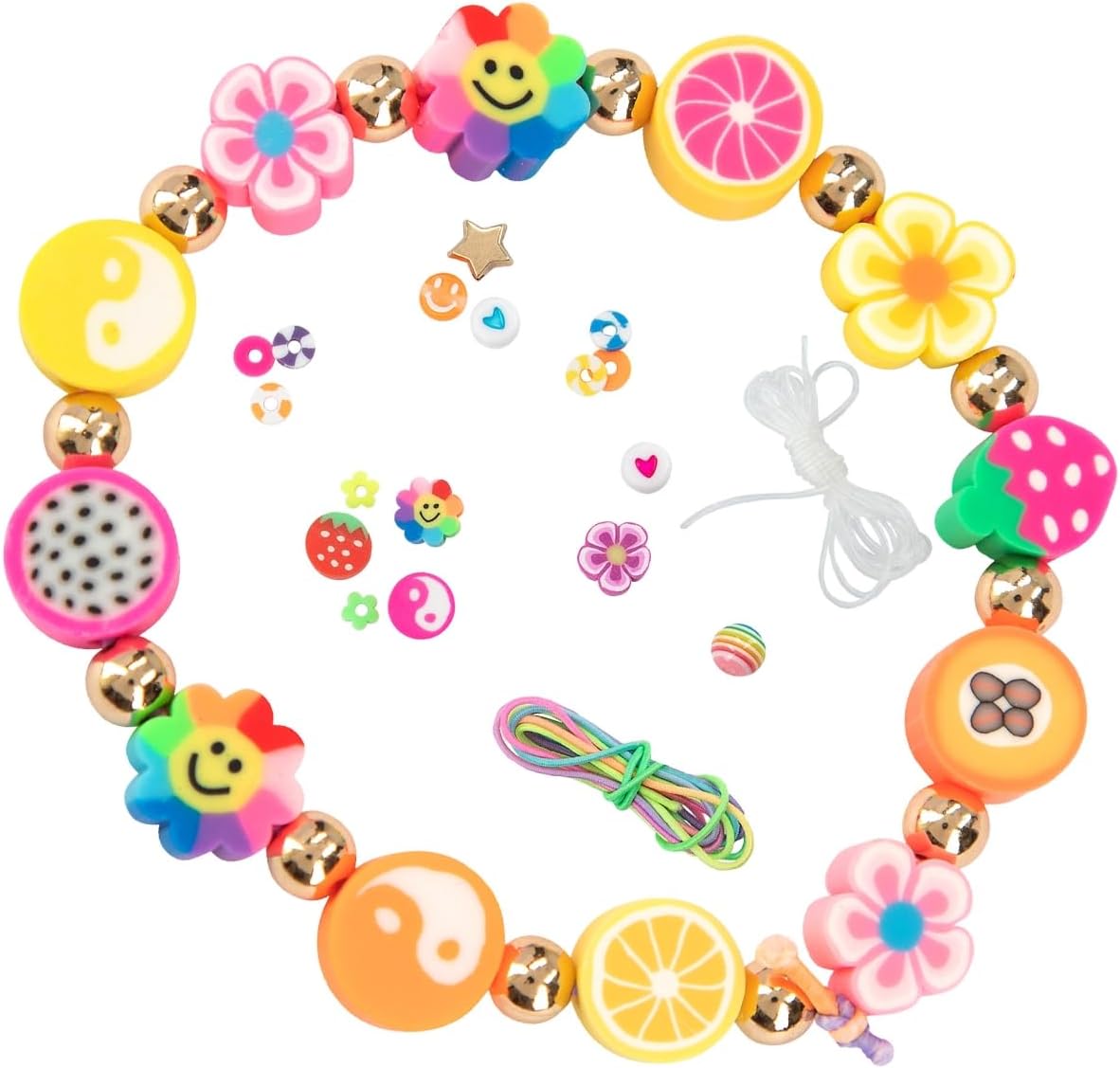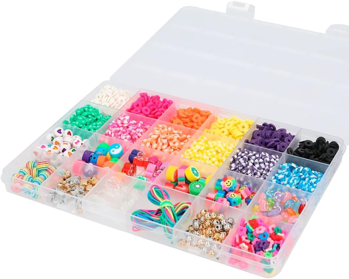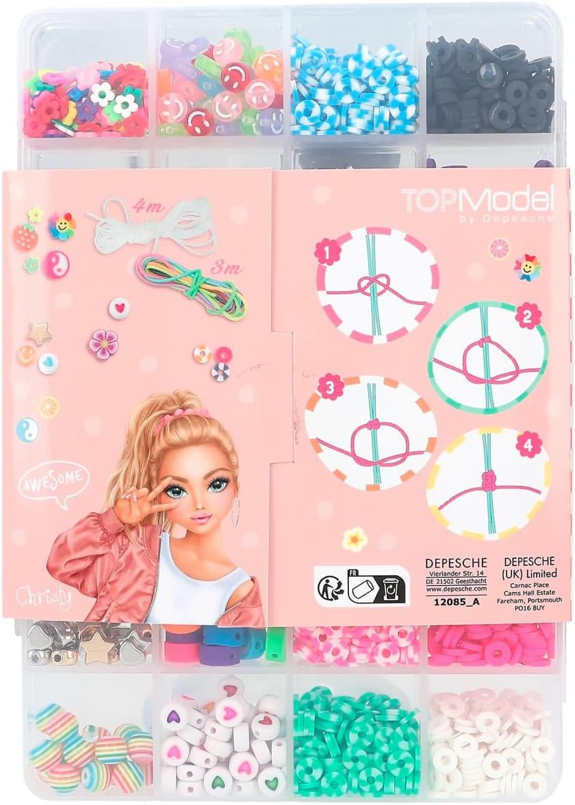 TOPModel perłowa moc! 20 różnych rodzajów kolorowych koralików do kreatywnego projektowania bransoletek i naszyjników, posortowanych w zamykanym plastikowym pudełku. W zestawie: przezroczysta gumka o długości 4 m i elastyczna tęcza o długości 3 m.