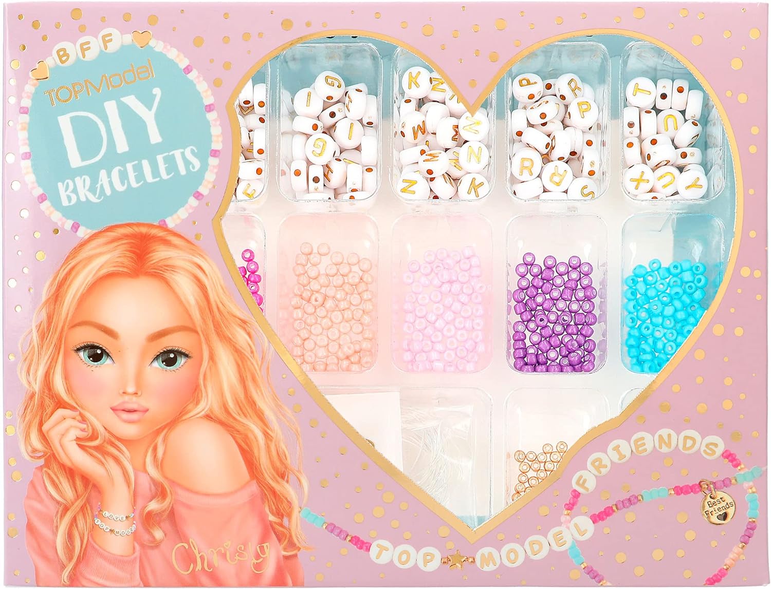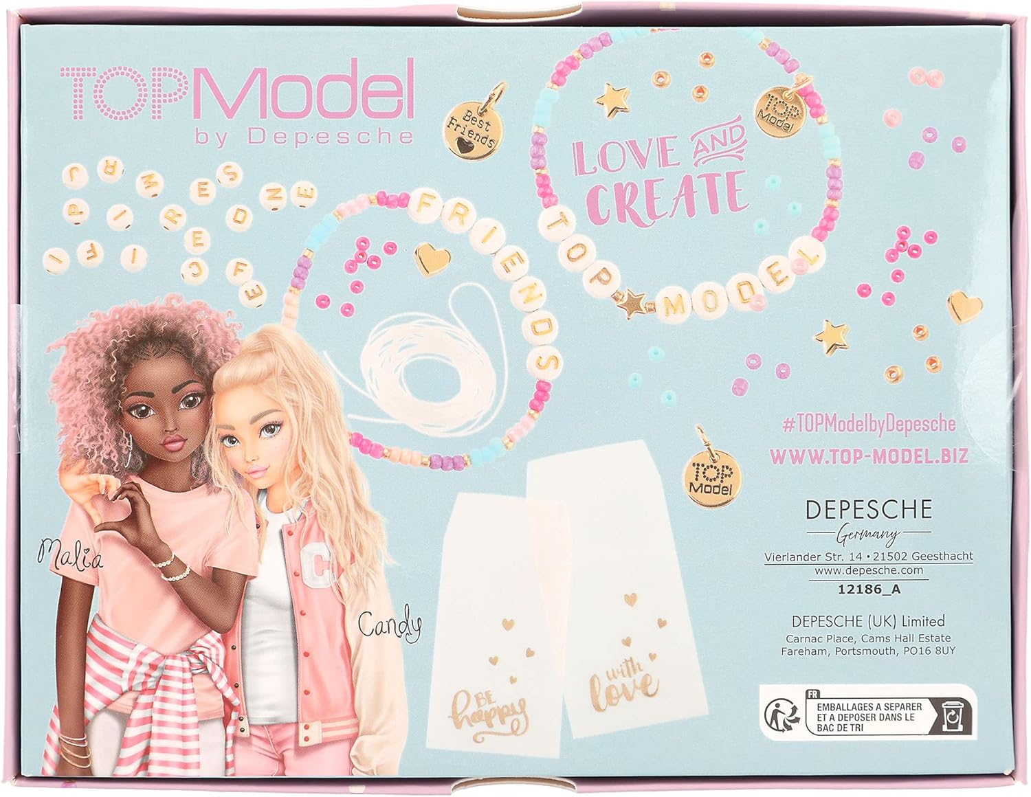 Wzornictwo: TOPModel by Depesche – z wieloma dekoracyjnymi perłami w różnych kolorach, złotymi zawieszkami i koralikami z literami