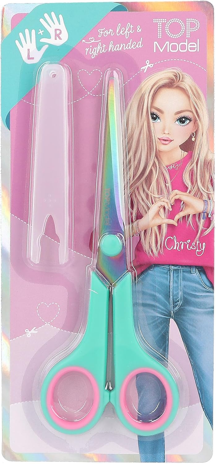 • Wzornictwo: TOPModel by Depesche – uchwyt w kolorze turkusowym i różowym, ostrza mienią się kolorowo w tęczowym wzornictwie