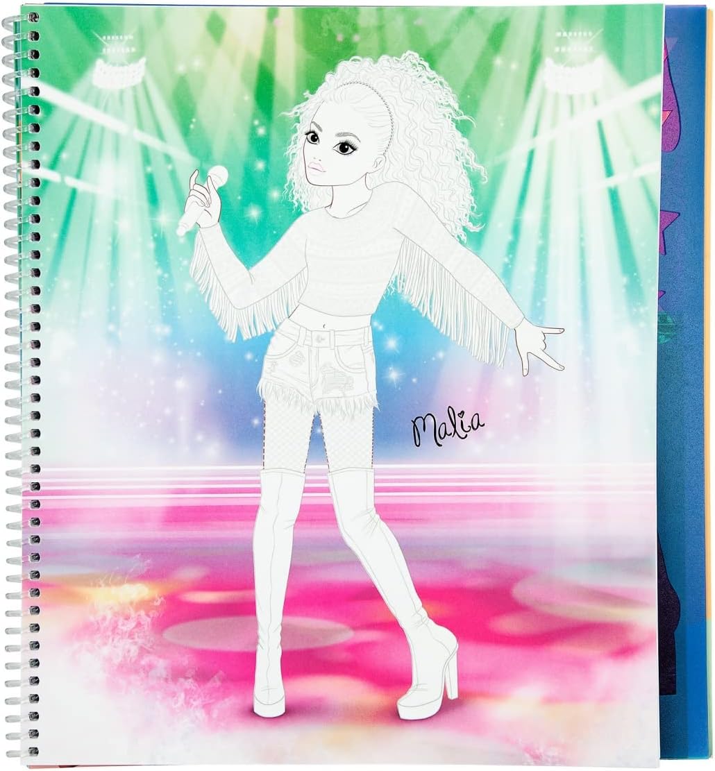 Projekt: TOPModel Popstar by Depesche - kolorowanka z nadrukowanymi figurkami modelki jako gwiazdy na scenie i z fajnym tłem