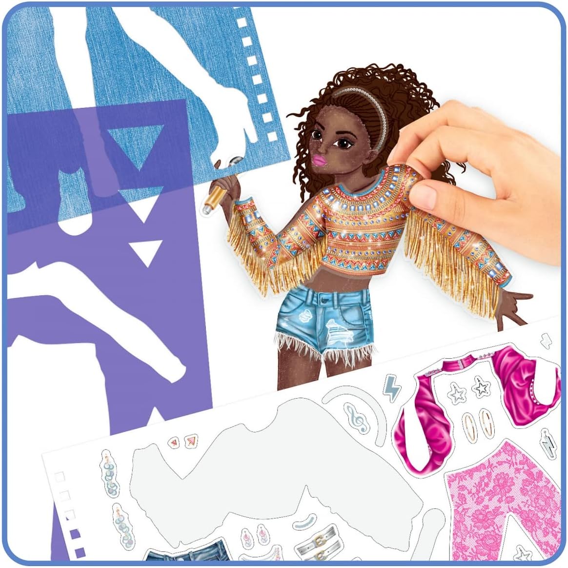 Kreatywna książka z 2 szablonami, kilkoma stronami papierowymi i 2 arkuszami naklejek z naklejkami na ubrania i akcesoria