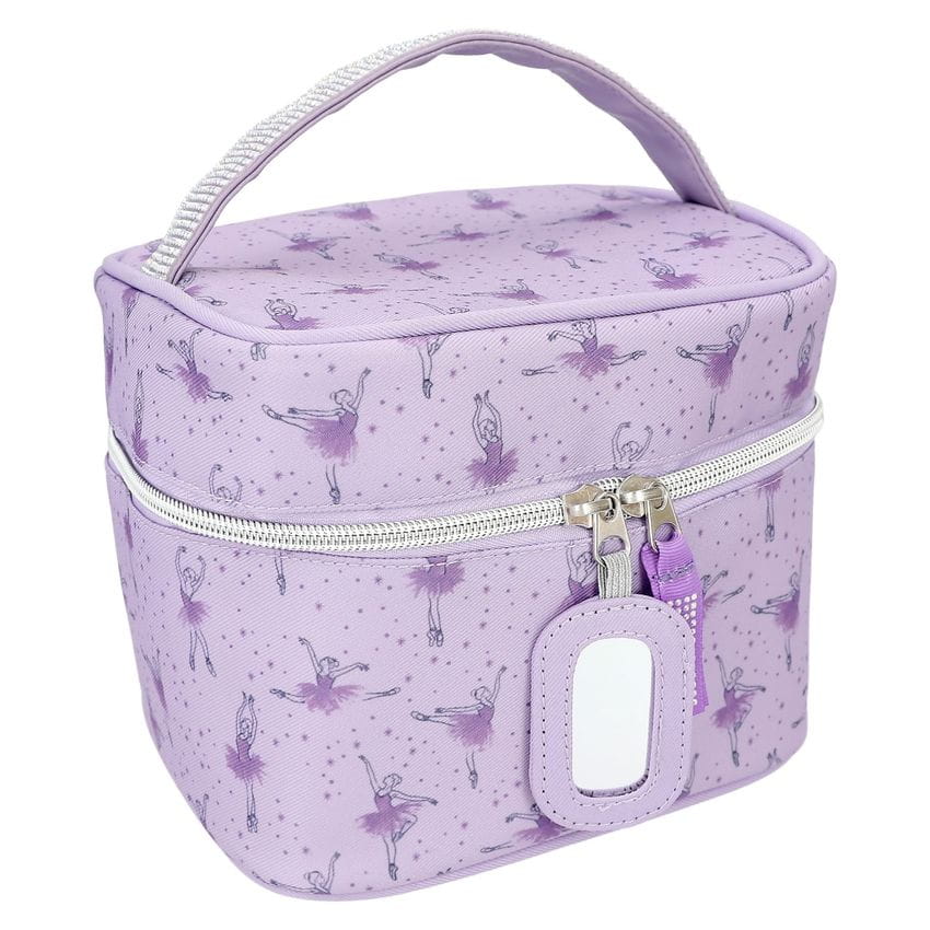 Kosmetyczka TOPModel dla małych fanek piękna! Delikatny fiolet z ładnym wzorem baleriny, rączką wysadzaną błyszczącymi kamieniami, praktyczną kieszenią z siatki i przezroczystą przegródką wewnątrz oraz zawieszką z lusterkiem na suwaku.