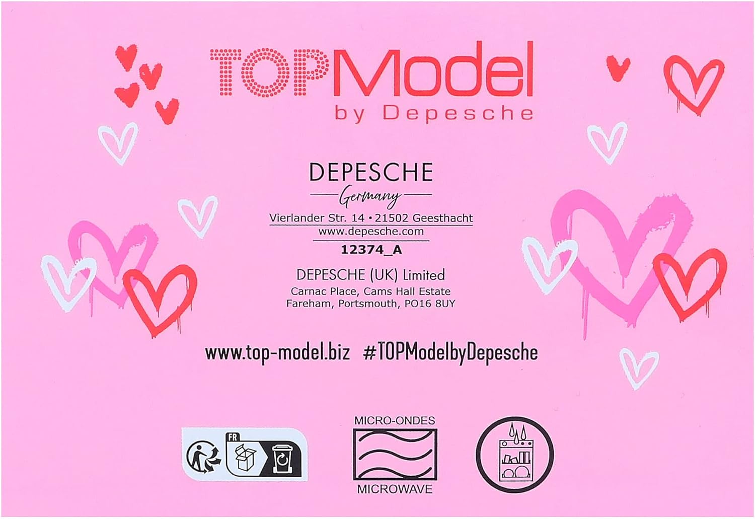 • Wzór: TOPModel One Love by Depesche - w kolorze białym, z motywem modelki, wzór serca w kolorze różowo-czerwonym i napisem "Love"