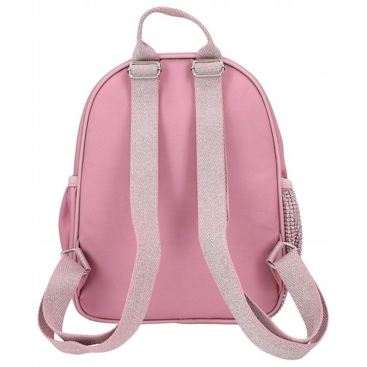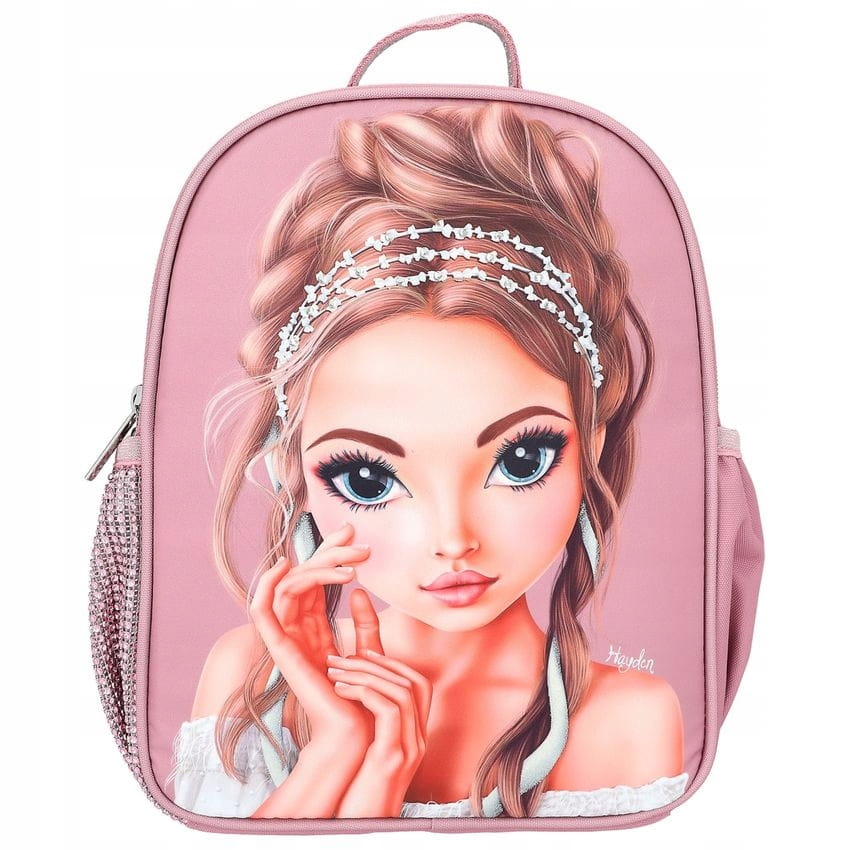 Brokat, glamour, super! Plecak TOPModel z dużą ilością delikatnego różu ma z przodu piękny motyw modelu XL, który ozdobiony jest kryształkami we włosach. Atrakcja przyciągająca wzrok: boczna kieszeń wykonana w całości z materiału ze strasem. Z górnym uchwytem i regulowanymi na długość ramiączkami, obszytymi połyskującym lureksem.
