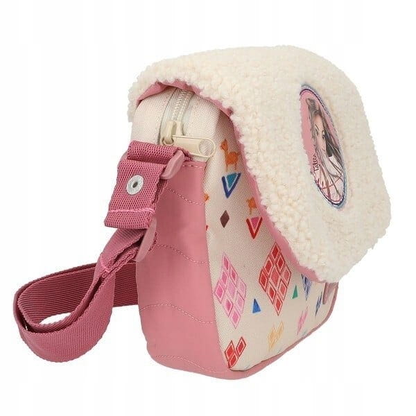 Przytul się fajnie! Ta torba na ramię od TOPModel w delikatnym różu jest przytulna jak kożuch! Różowa torebka posiada z przodu klapę z owczej skóry, a pod spodem kolorowy geometryczny wzór z zabawnymi lamami. Torbę otwierasz najpierw odpinając zatrzask, a następnie rozpinając zamek, tak aby nic nie wypadło. Torba posiada regulowane ramiączka, które ozdobione są lureksem. Krótko mówiąc, ładna torba dla stylowych młodych dam!