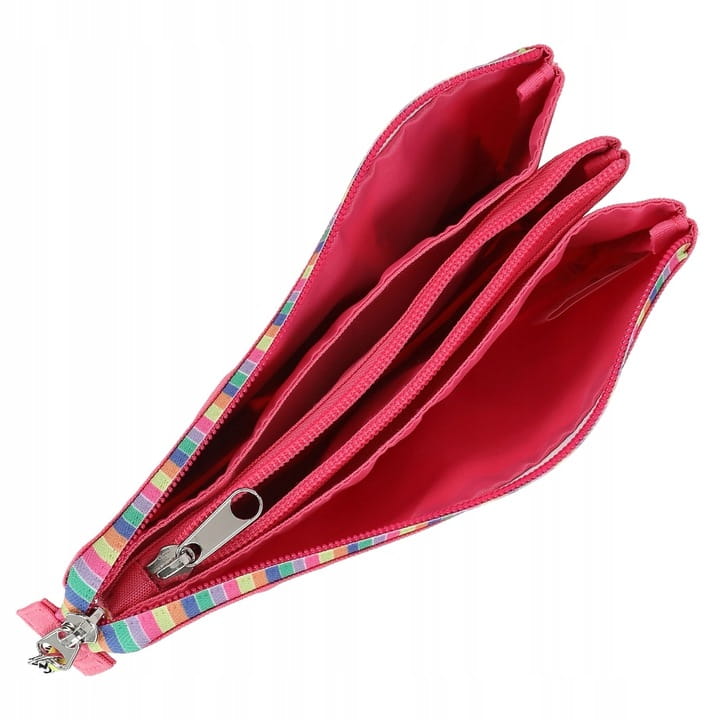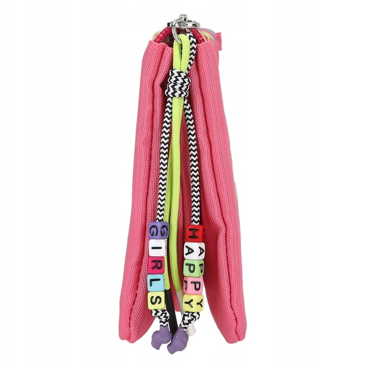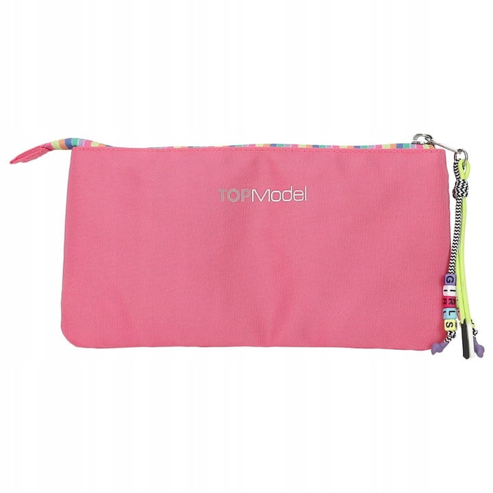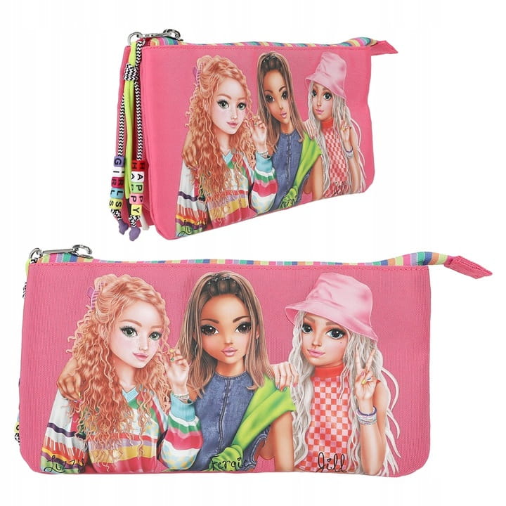 Kolor sprawia radość: różowy piórnik JOY od TOPModel ma wspaniały motyw z trzema modelami na przodzie, kolorowy zamek i super fajny ściągacz zamka wykonany z modnych wstążek i koralików z literami (HAPPY GIRLS). Z trzema oddzielnymi przegródkami.