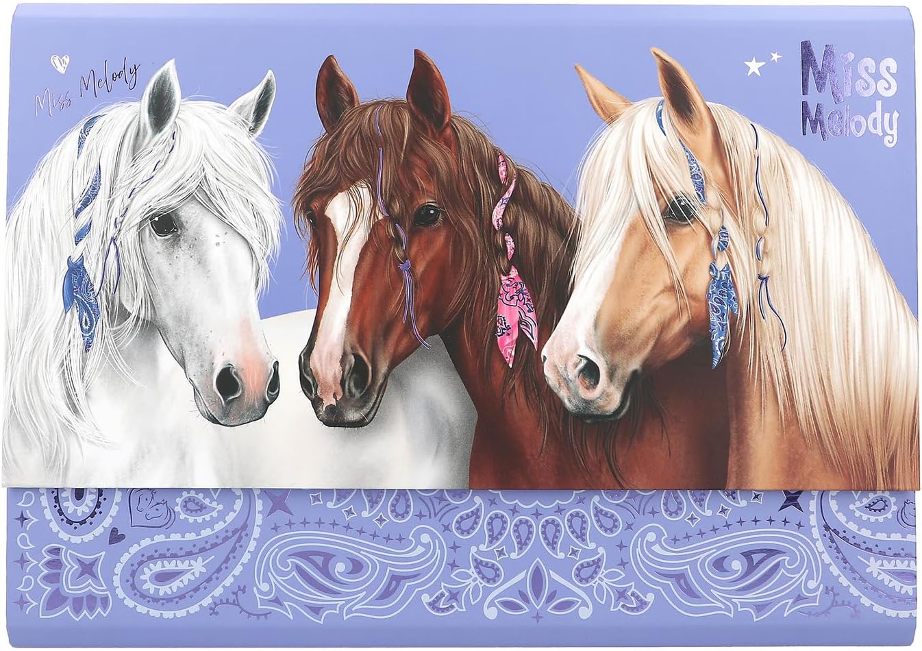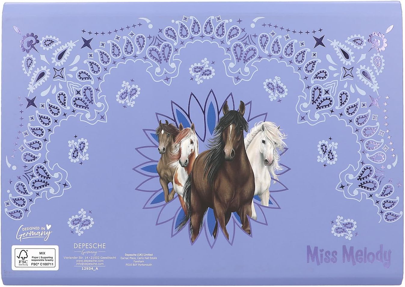 • Wzór: Miss Melody Bandana by Depesche - w kolorze ciemnego fioletu, ozdobiona pięknymi motywami koni i wzorem bandany