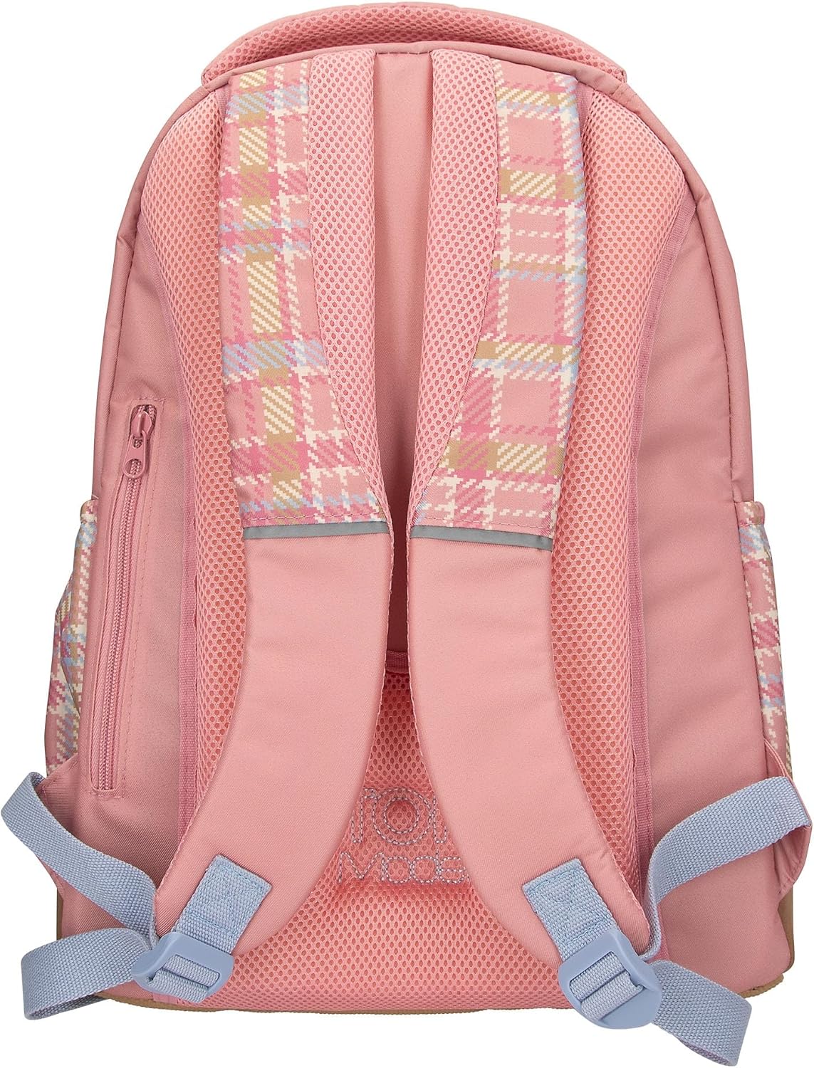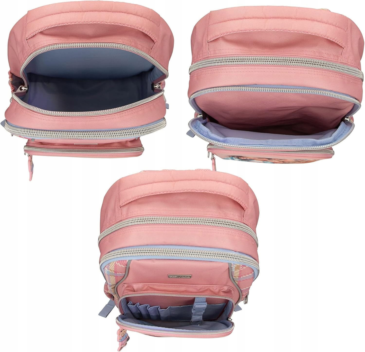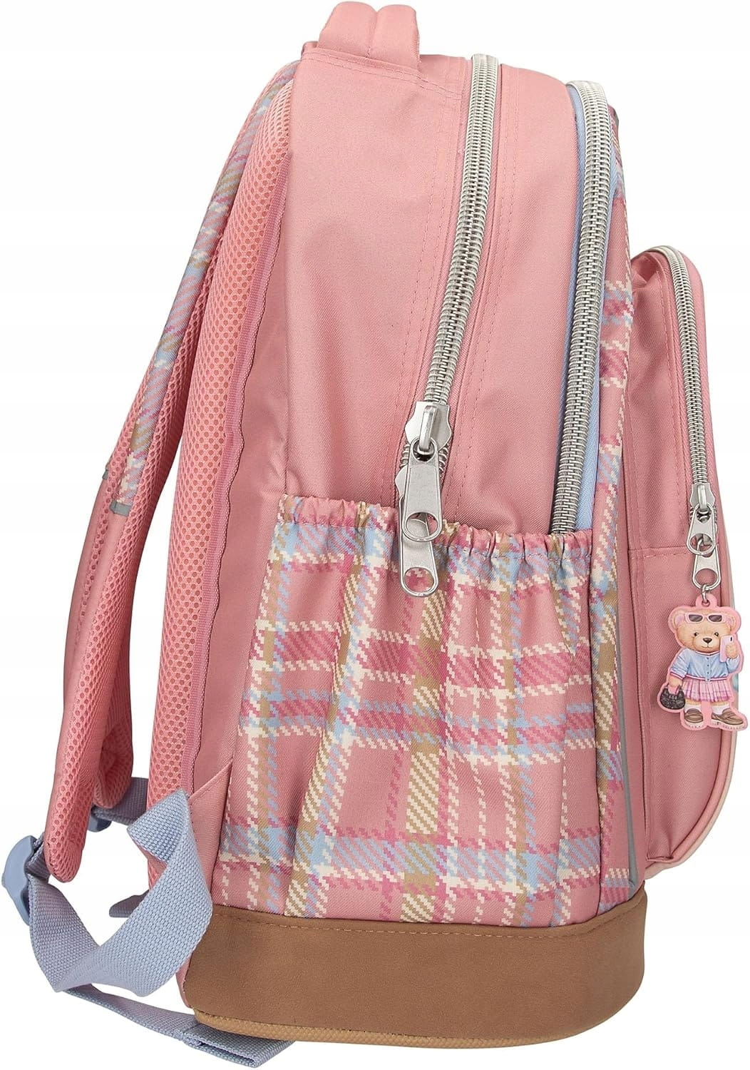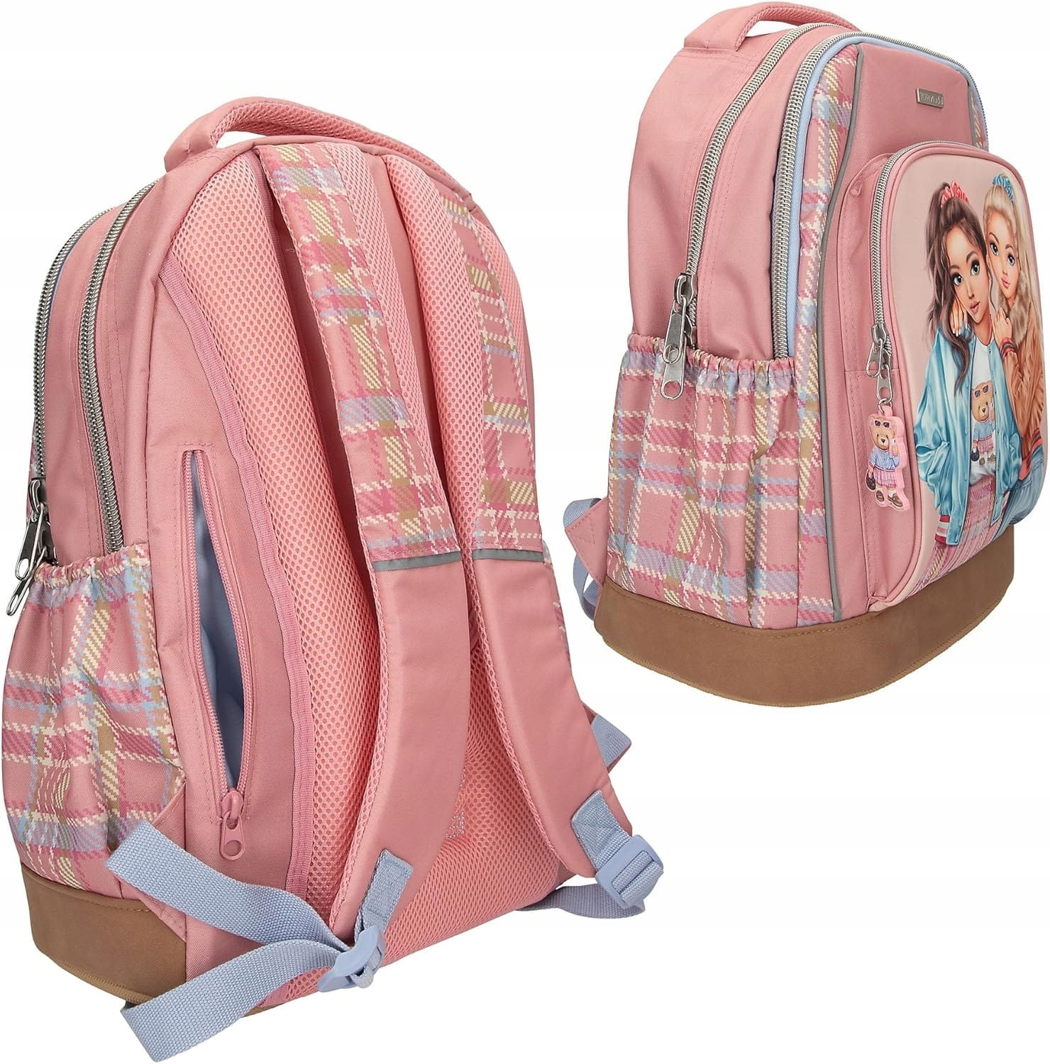 Witamy w Team Teddy! Plecak szkolny TOPModel w delikatnym różu ma duży podwójny motyw modelu na przedniej kieszeni. Kratkowane detale naprawdę przyciągają wzrok. Praktyczny: wyściełany tył, regulowane paski na ramię, kieszenie boczne, wyściełany uchwyt do przenoszenia, dwie przestronne komory główne oraz podstawa odporna na wodę i brud. Uroczy dodatek: zawieszka z misiem na suwaku. Materiał: 100% poliester z recyklingu, Podszewka: 100% poliester