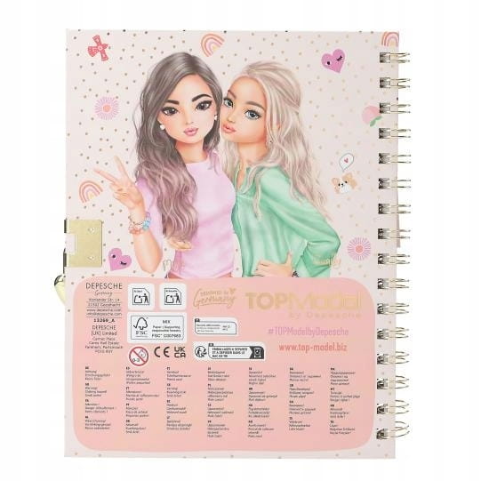 Pamiętnik TOPModel (w linie) z kłódką w kształcie serca i serduszkami