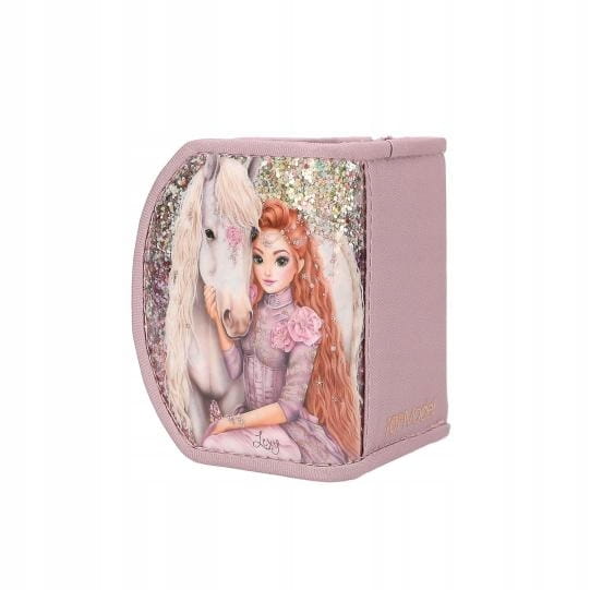 - w subtelnym odcieniu fioletu, a jego front ozdobiony jest błyszczącymi detalami oraz pięknym motywem modelki TOPModel z koniem , co nadaje mu wyjątkowy i modny charakter