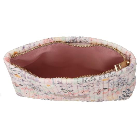Mała kosmetyczka TOPModel ma uroczy wzór delikatnych kwiatów i motyli na jasnym tle. Z pięknym pikowaniem, subtelnym logo i zamkiem błyskawicznym. Materiał: 100% bawełna.