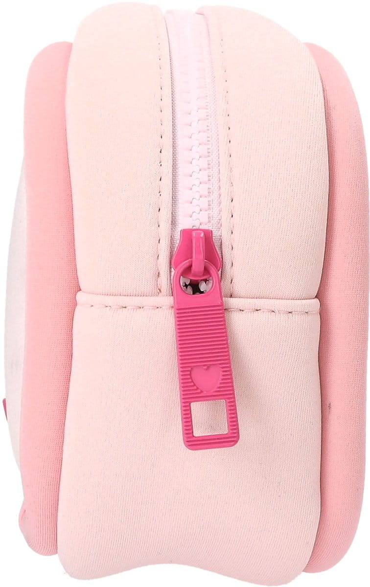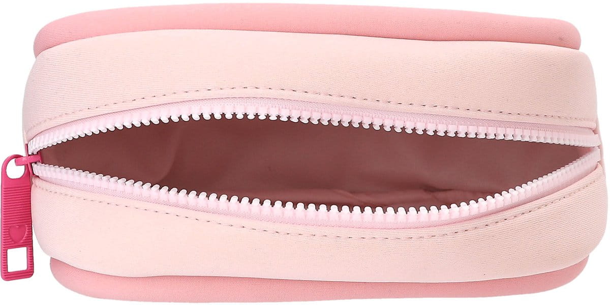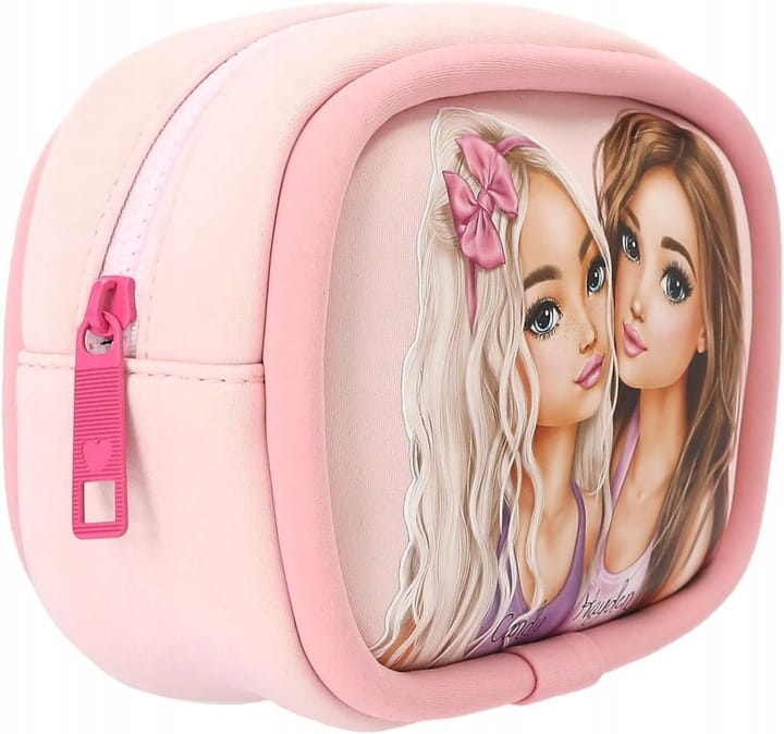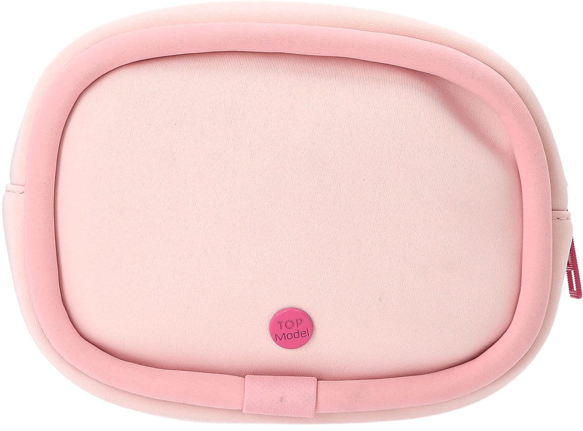 Taka miękka, taka słodka! Kosmetyczka TOPModel w delikatnym różowym odcieniu jest wykonana z miękkiego neoprenu. Z przodu zdobi ją duży wizerunek modelki, zawieszka zapinana na suwak i neonoworóżowy guzik z logo.