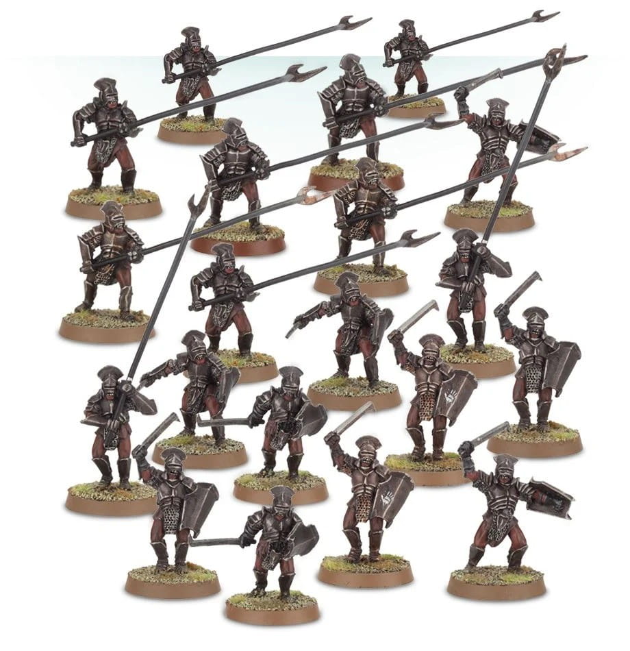 Ten plastikowy zestaw w pudełku zawiera 32 elementy, z których można zbudować 20 wojowników Uruk-hai: 10 z mieczem i tarczą oraz 10 z piką. Ten zestaw zawiera 20 okrągłych podstawek o średnicy 25 mm.