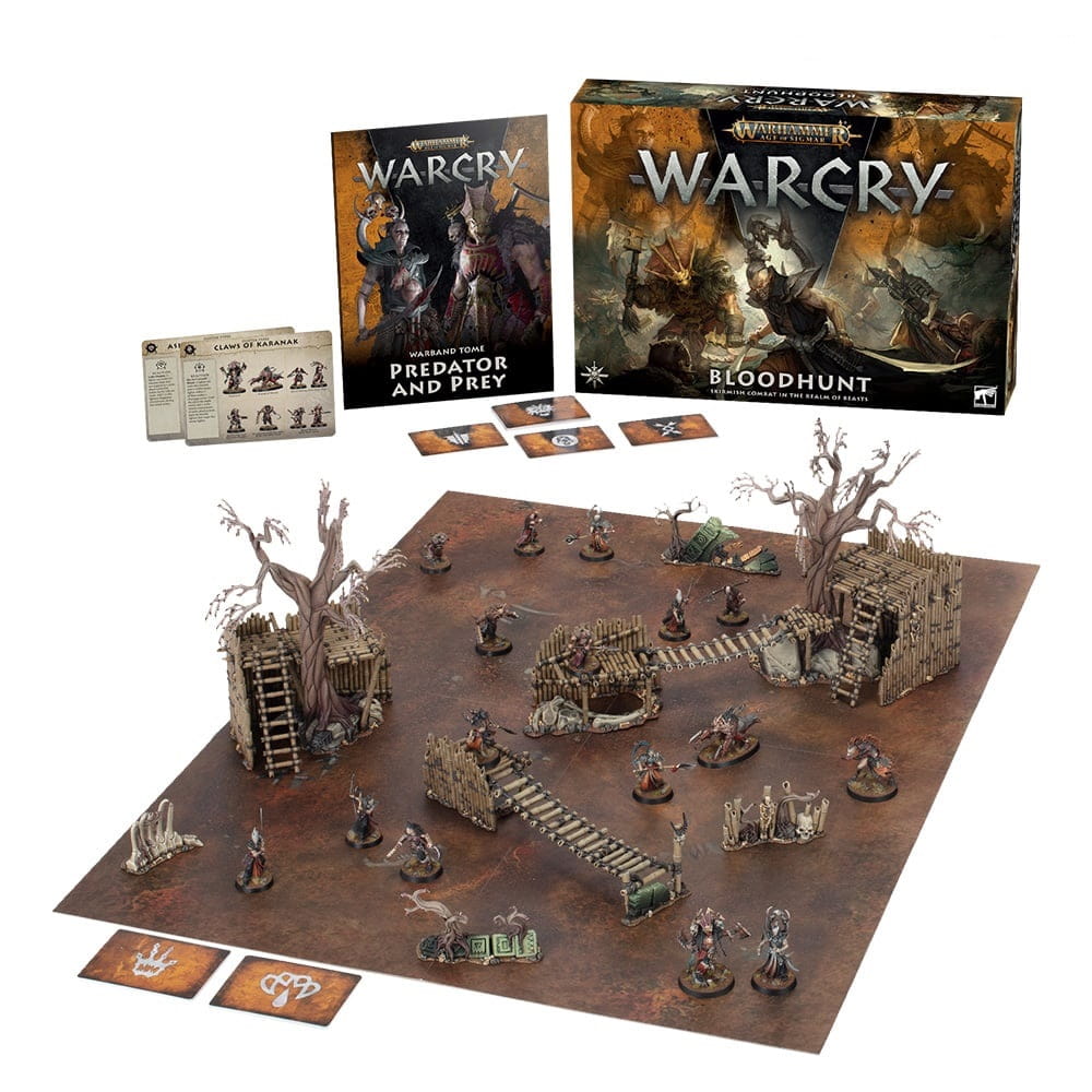 Podręcznik z zasadami gry (64 strony) w języku angielskim Askurgan Trueblades - 8 figurek Claws of Karanak - 8 figurek 10 elementów terenu Gnarlwood Scenery Dwustronna mata do gry 30 kart do gry BATTLEPLAN 18 kart do gry WARBAND