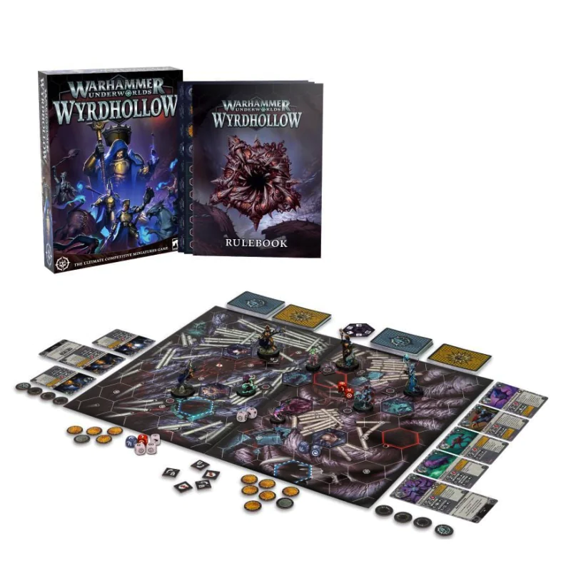 - Kompletny i zwięzły podręcznik do gry Warhammer Underworlds – przeformatowany, aby jeszcze bardziej ułatwić rozpoczęcie gry. Wyrdhollow kładzie nacisk na talie Rivals, oferując nowe sposoby mieszania gier i utrzymywania świeżości i równowagi. Fascynujący materiał tła eksploruje tajemne jaskinie pod Sękatym Lasem i rozproszone w nich starożytne relikty